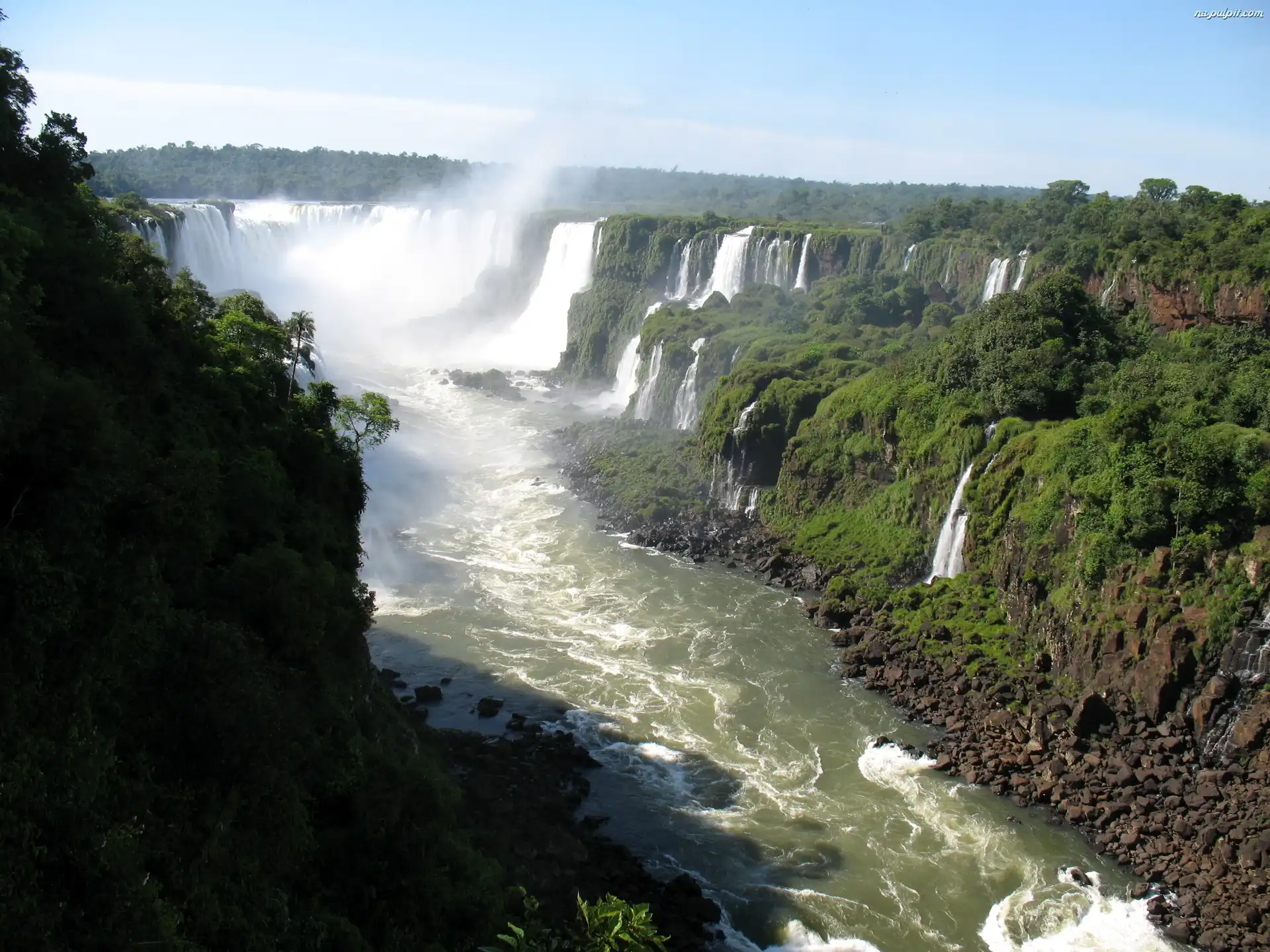 Skały, Las, Wodospady, Rzeka, Krzaki Na Pulpit