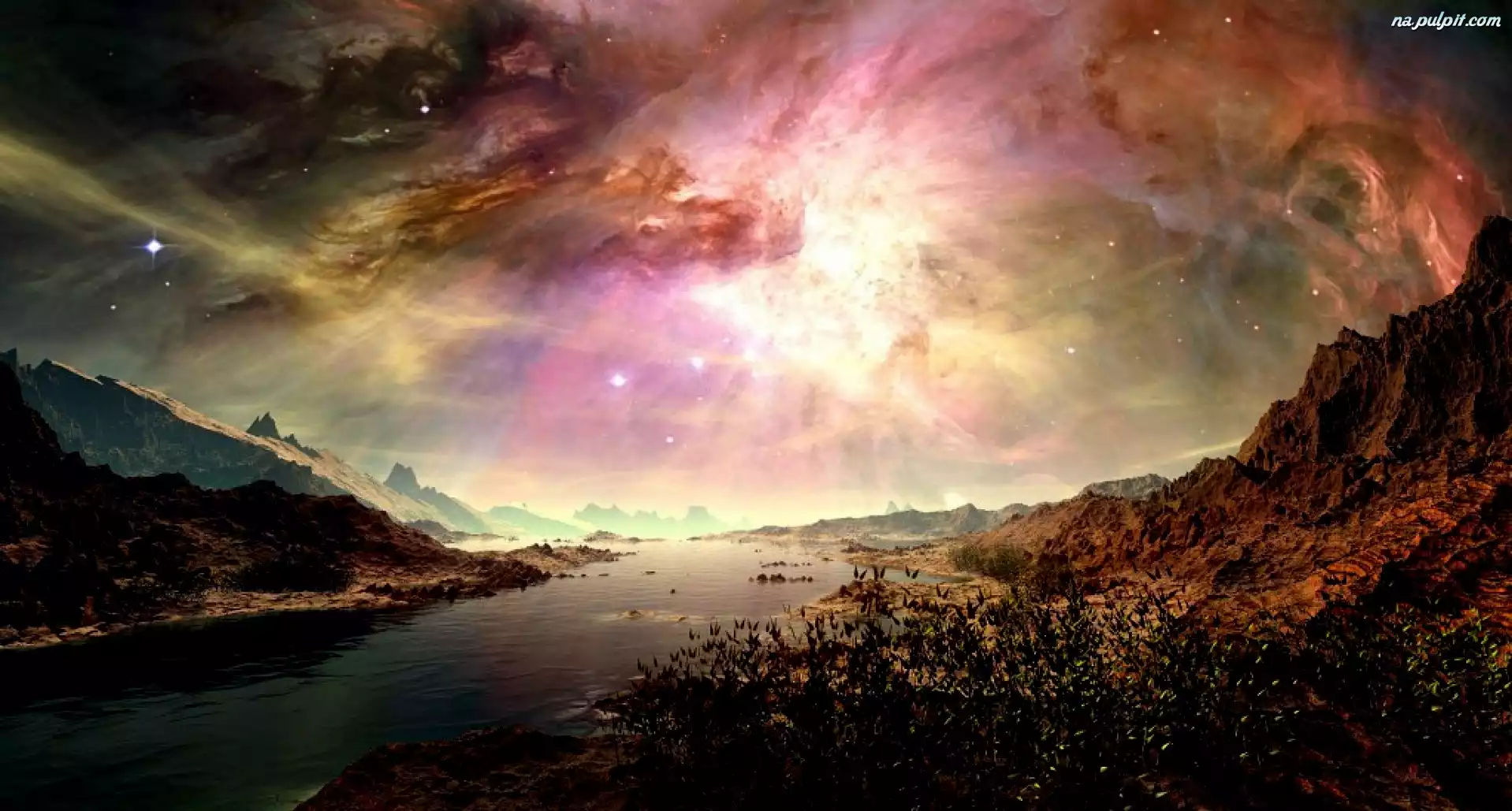 Skały, Zorza, Rzeka, Polarne Na Pulpit