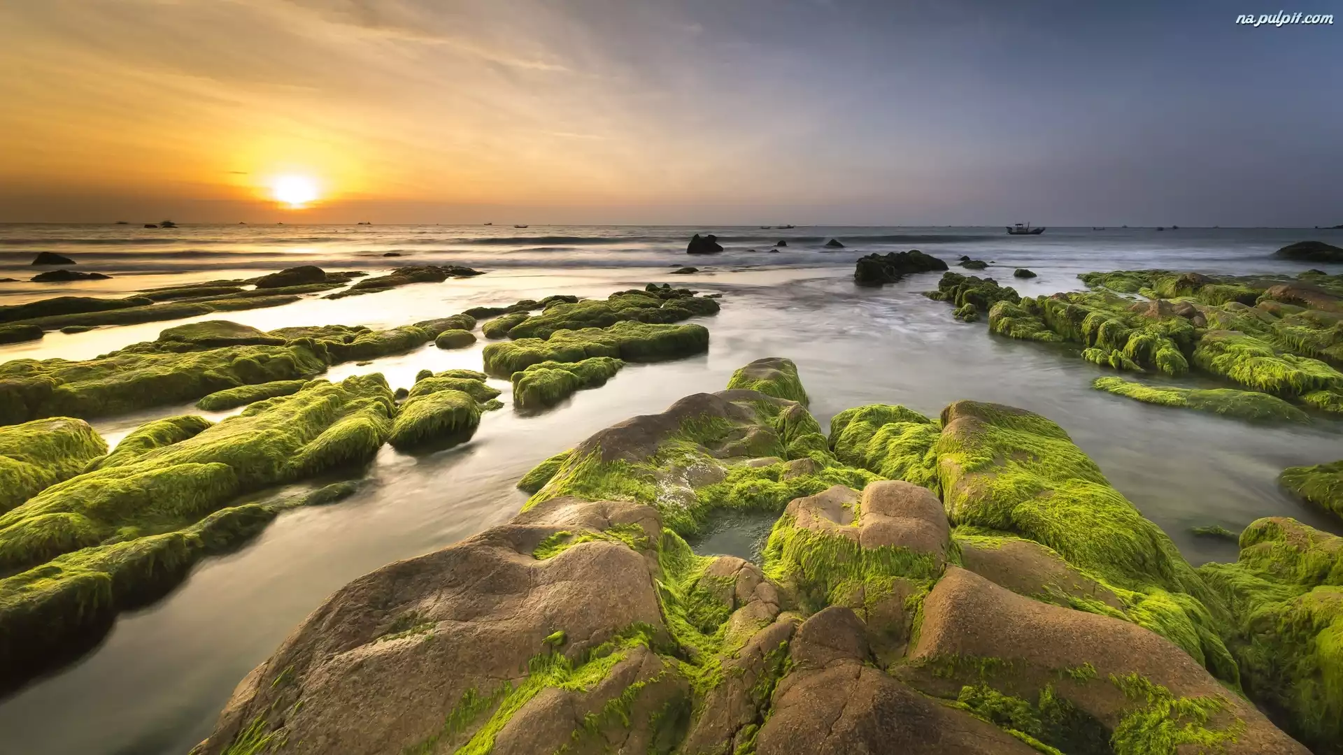 Skalisty, Skały, Wschód słońca, Brzeg, Wybrzeże, Omszałe Na Pulpit