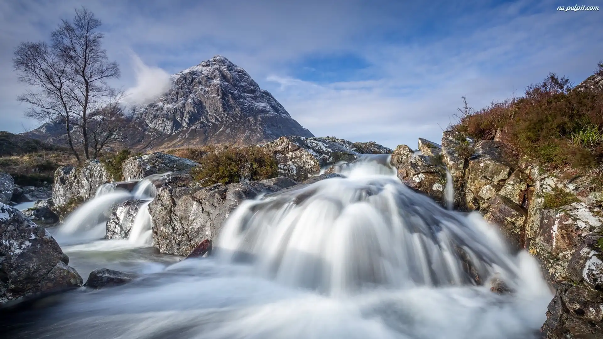 Skały, Region Highland, Dolina Glen Coe, Rzeka Coupall, Drzewa, Rośliny, Szczyt Buachaille Etive Mor, Szkocja, Góry Na Pulpit |