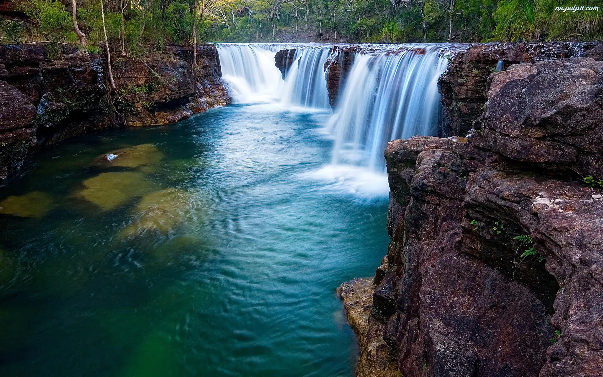 Wodospad, Skały, Drzewa Na Pulpit