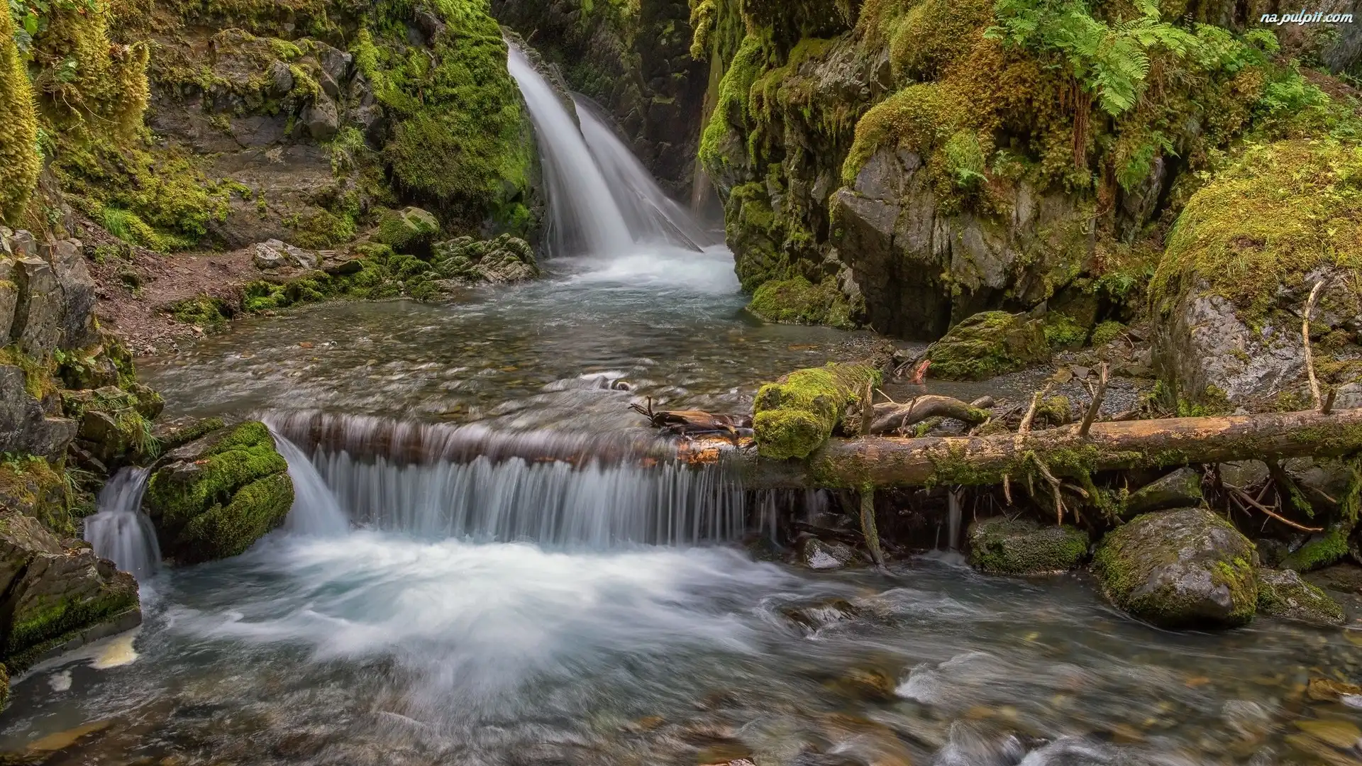 Skały, Drzewo, Rośliny, Rzeka, Wodospad, Powalone Na Pulpit