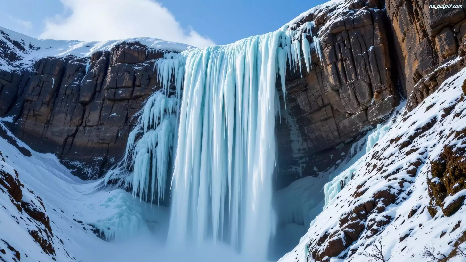 Śnieg, Skały, Wodospad, Zima, Sople Na Pulpit