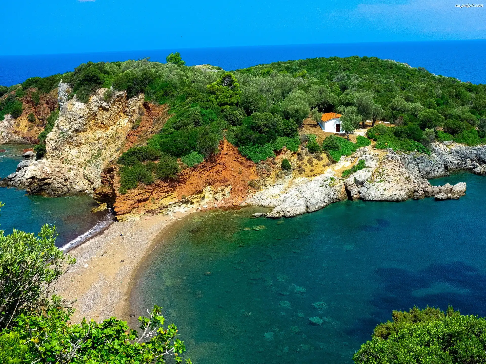 Skały, Drzewa, Krzewy, Dom, Wyspa, Ocean Na Pulpit