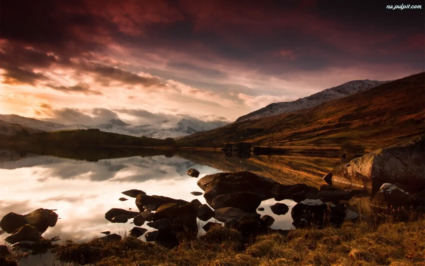 Skały, Słońca, Zachód, Chmury Na Pulpit