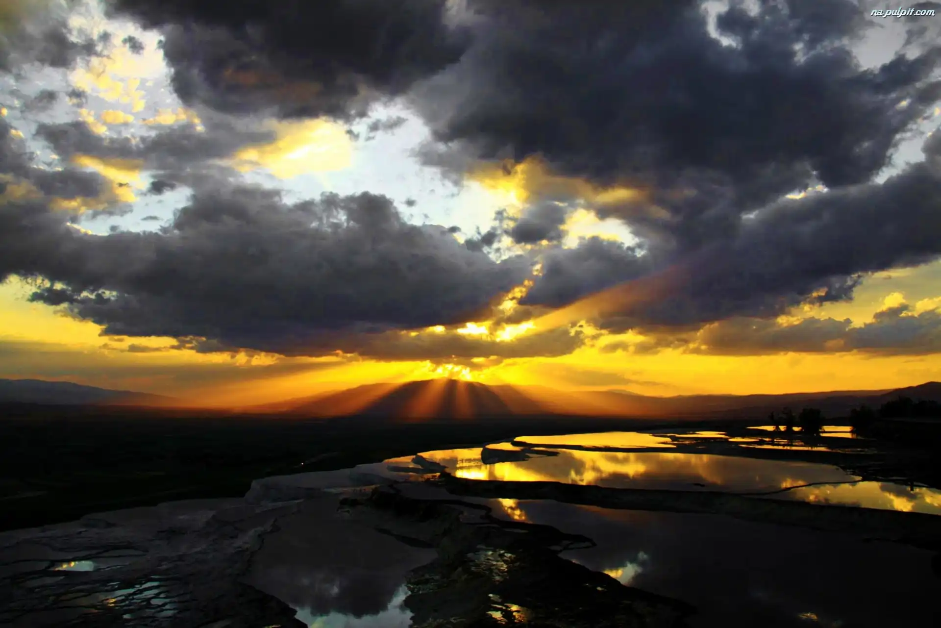 Skały, Słońca, Zachód, Chmury Na Pulpit