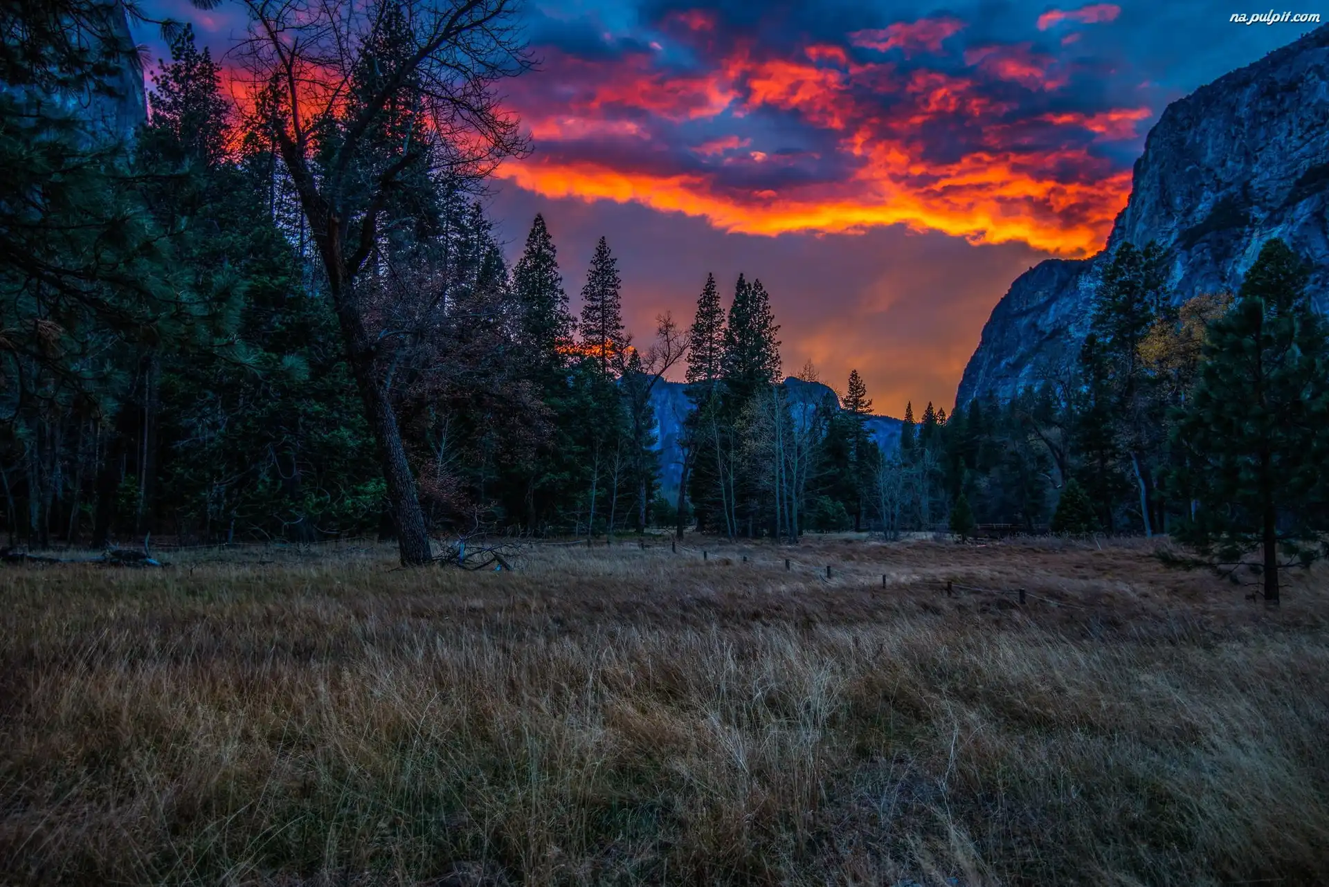 Skały, Las, Słońca, Zachód, Polana Na Pulpit