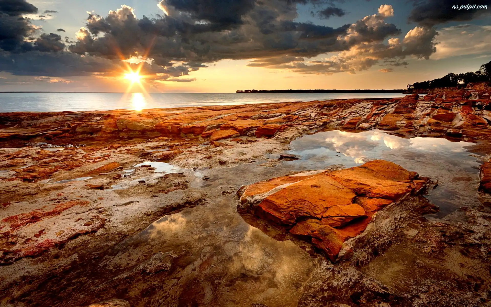 Skały, Słońca, Zachód, Morze Na Pulpit