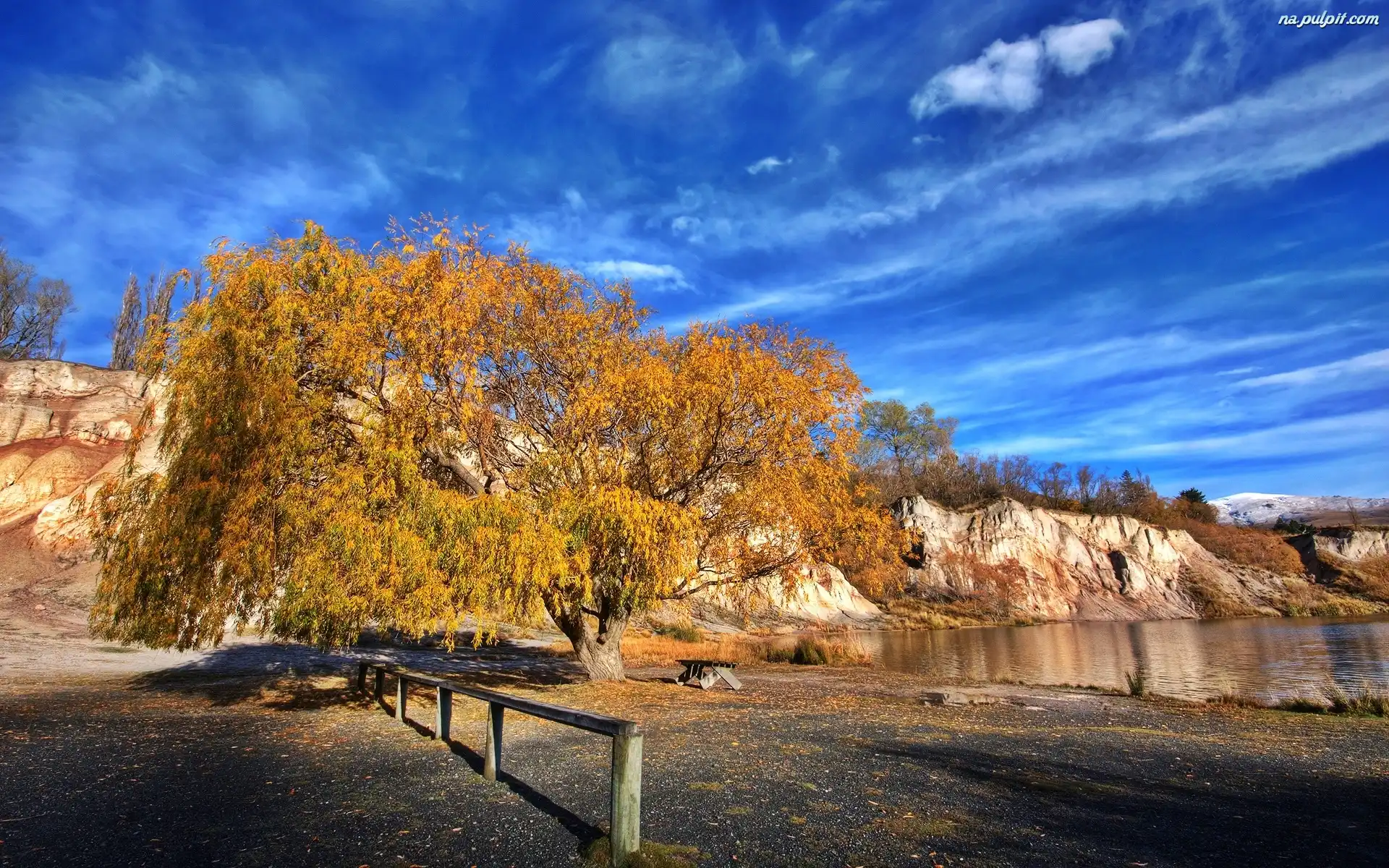Skały, Drzewo, Złote, Woda Na Pulpit