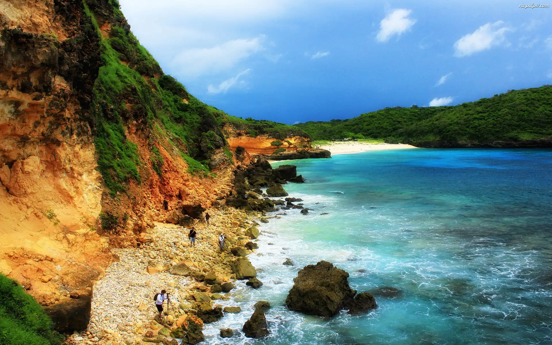 Skarpa, Lasy, Turyści, Morze, Indonezja, Kamienie Na Pulpit