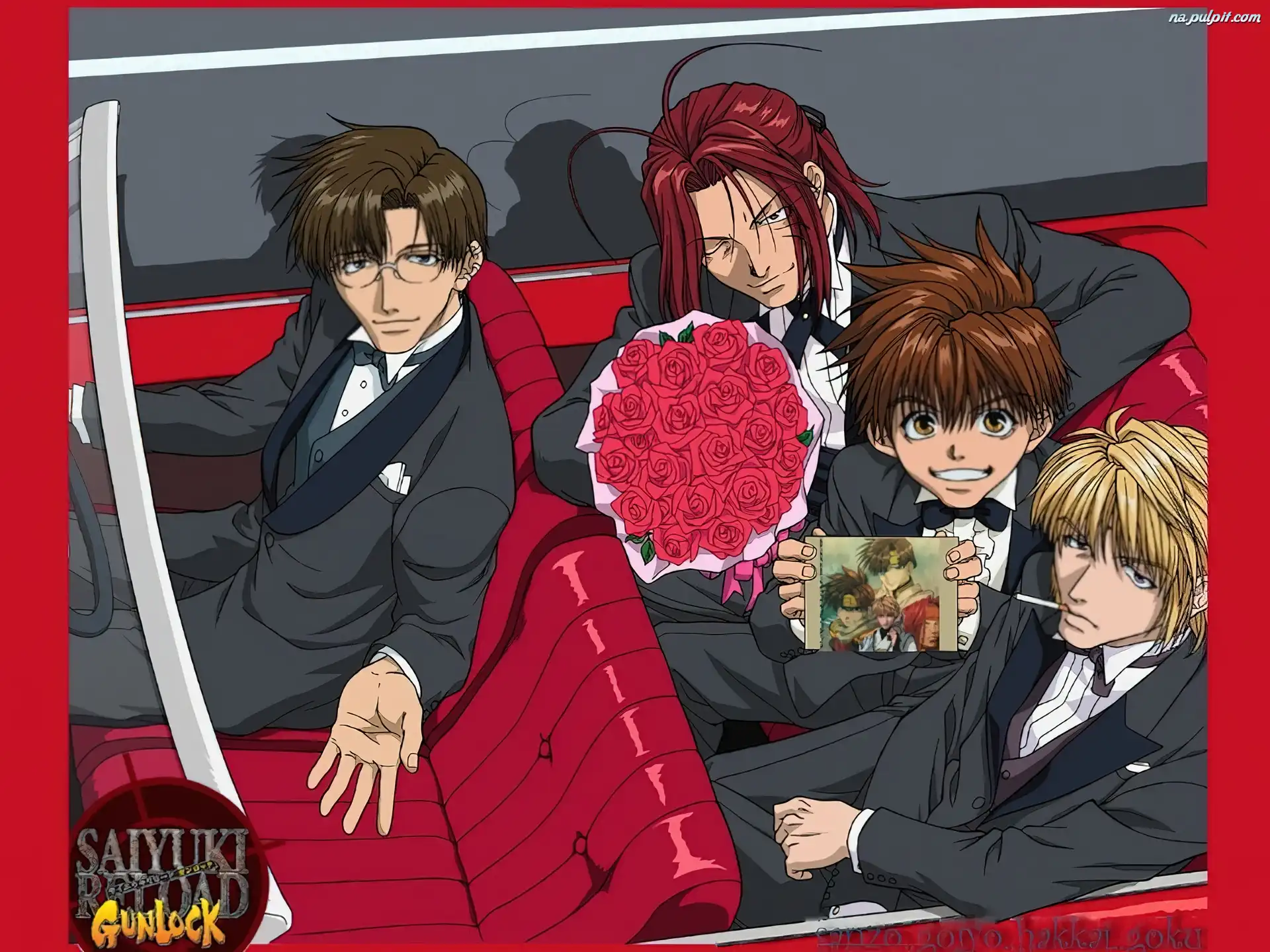 skóry, samochód, Saiyuki, czerowne Na Pulpit