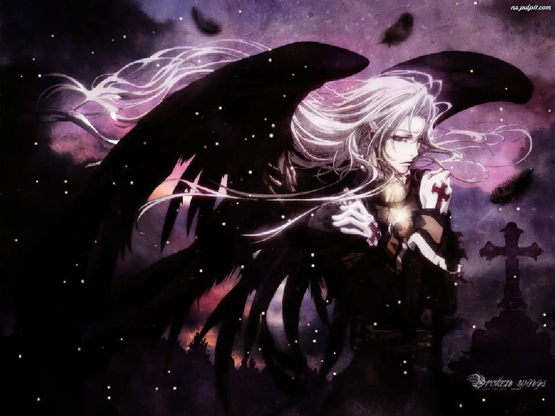 skrzydła, krzyż, Trinity Blood, noc