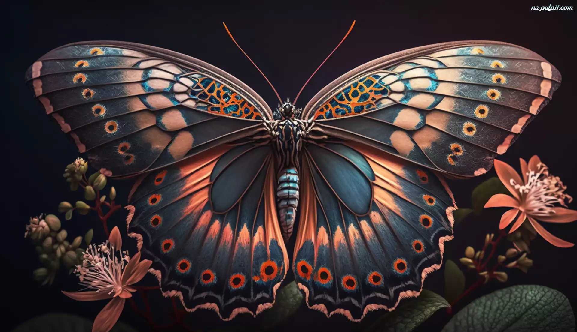 Kwiaty, Kolorowy, Rozpostarte, Skrzydła, Motyl, Grafika Na Pulpit
