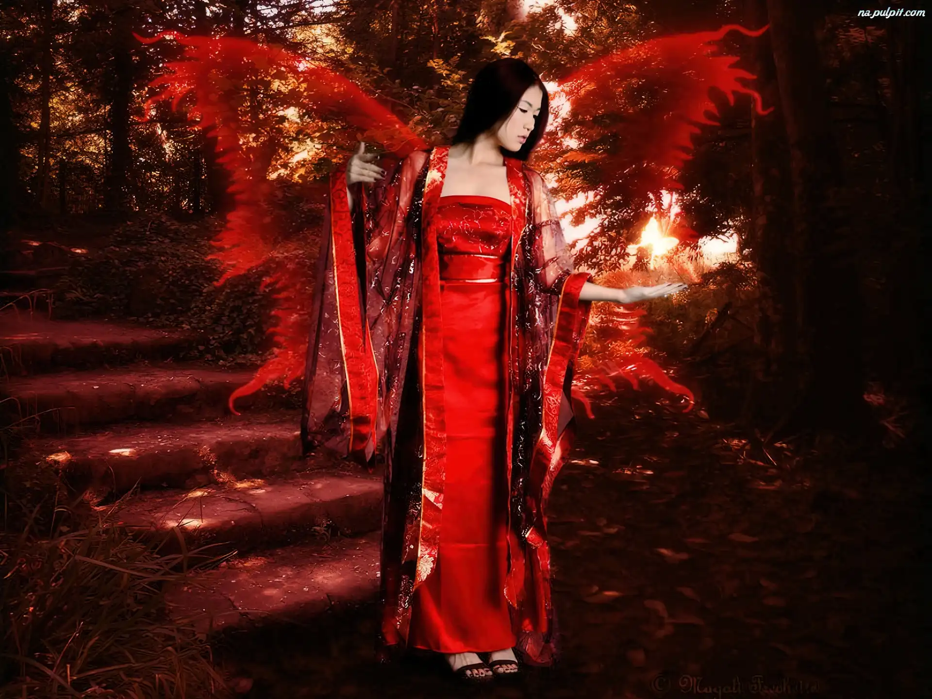 Skrzydła, Czerwona, Kobieta, Suknia