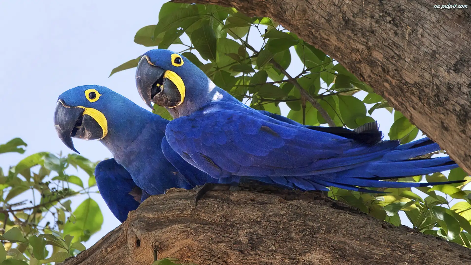 Skrzydła, Papugi, Niebieskie, Drzewo Na Pulpit