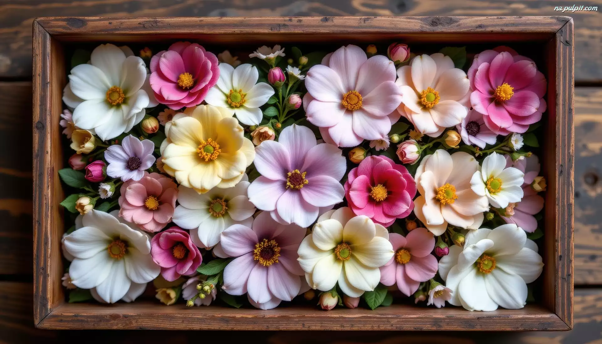 Kolorowe, Kwiaty, Drewniana, Skrzynka Na Pulpit