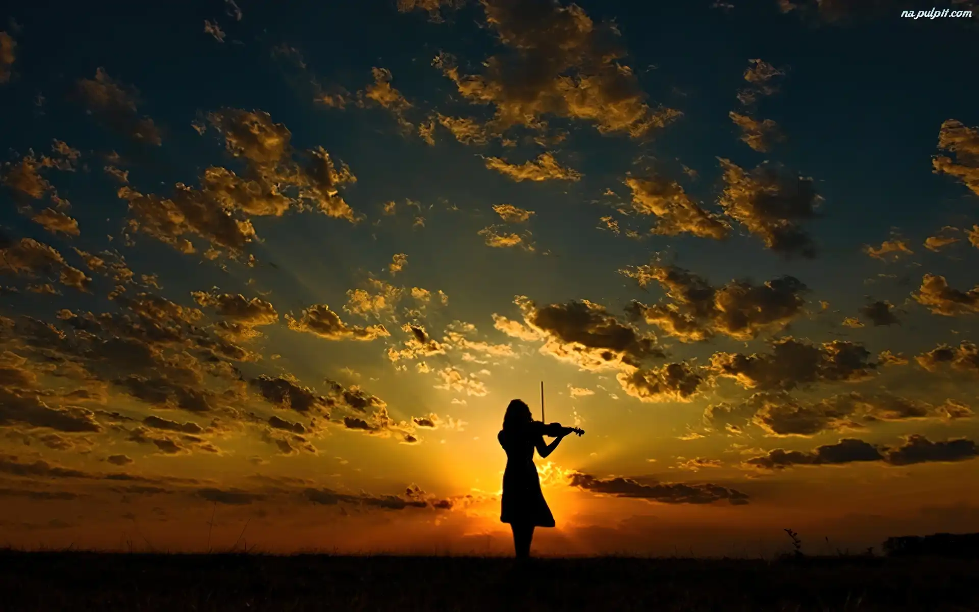 Skrzypaczka, Chmury, Słonca, Zachód, Kobieta Na Pulpit