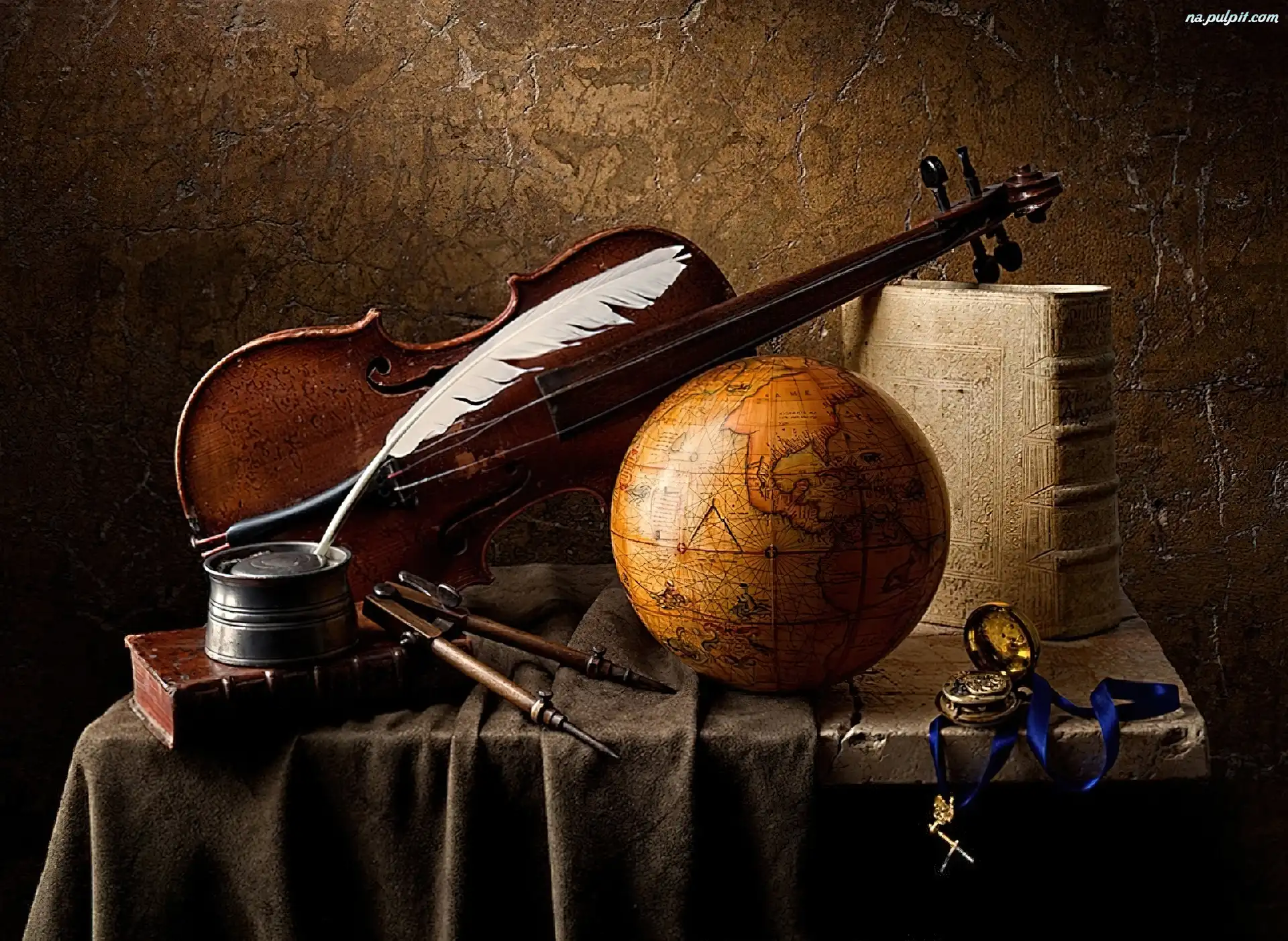 Skrzypce, Książka, Globus, Pióro Na Pulpit