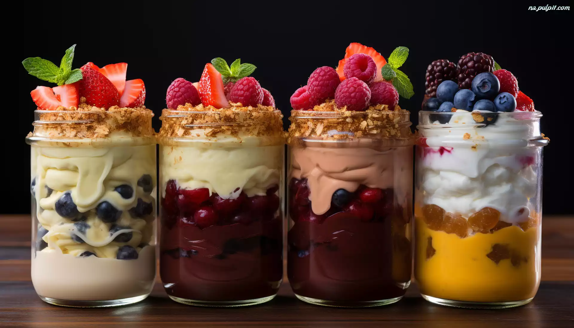 Listki, Deser, Owoce, Słoiki, Jogurt, Grafika Na Pulpit