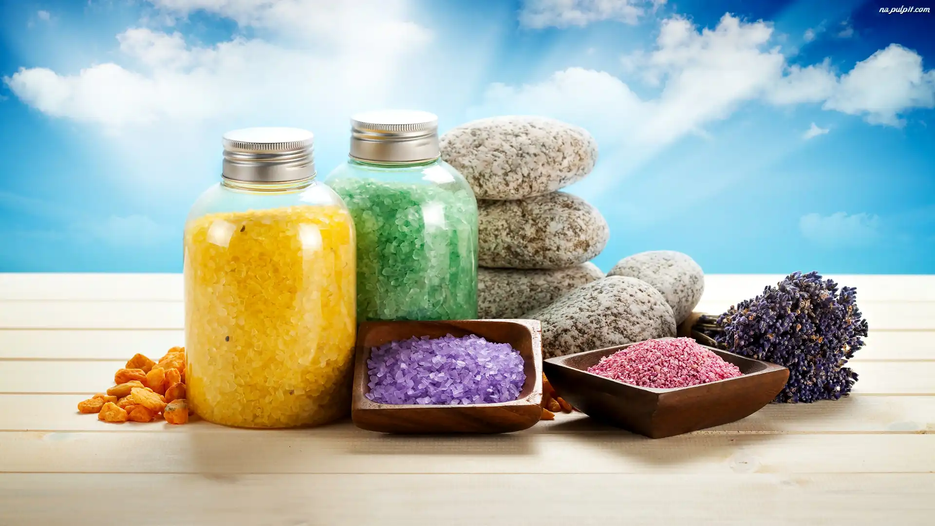 Słoiki, Kamienie, Lawenda, Kolorowa, SPA, Sól Na Pulpit