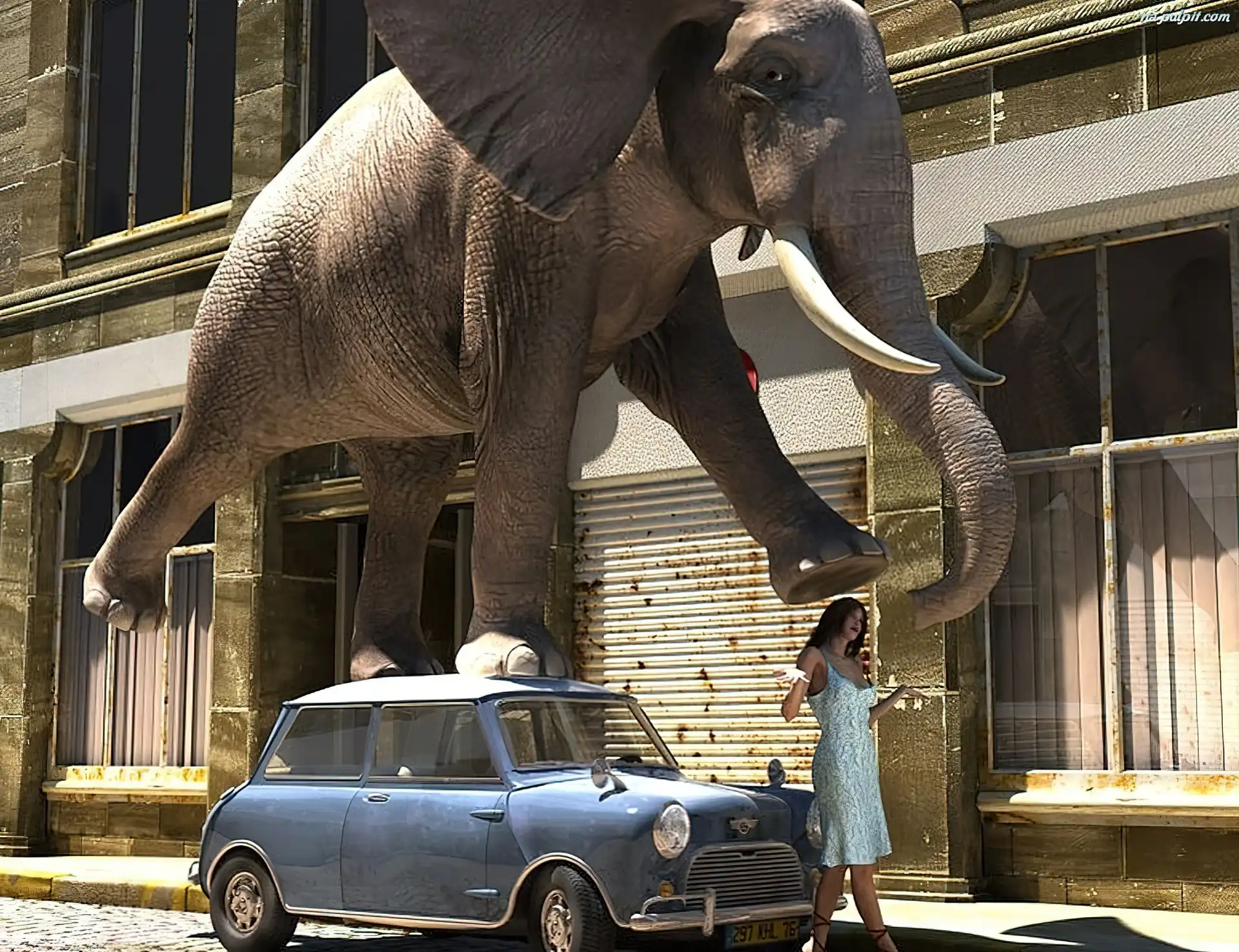 Dziewczyna, Słoń, Samochód Na Pulpit