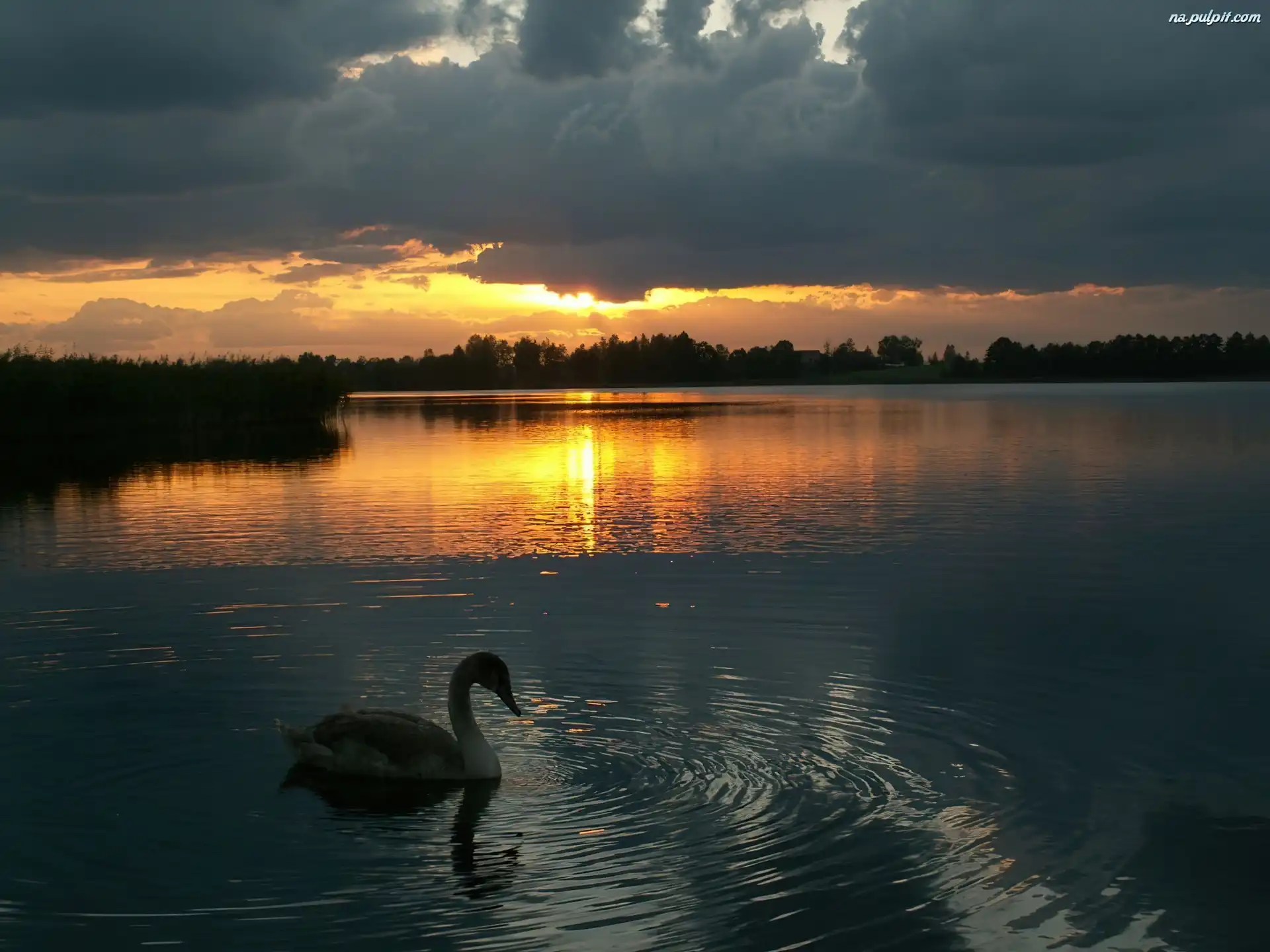 Słońca, Jezioro, Łabędź, Zachód Na Pulpit