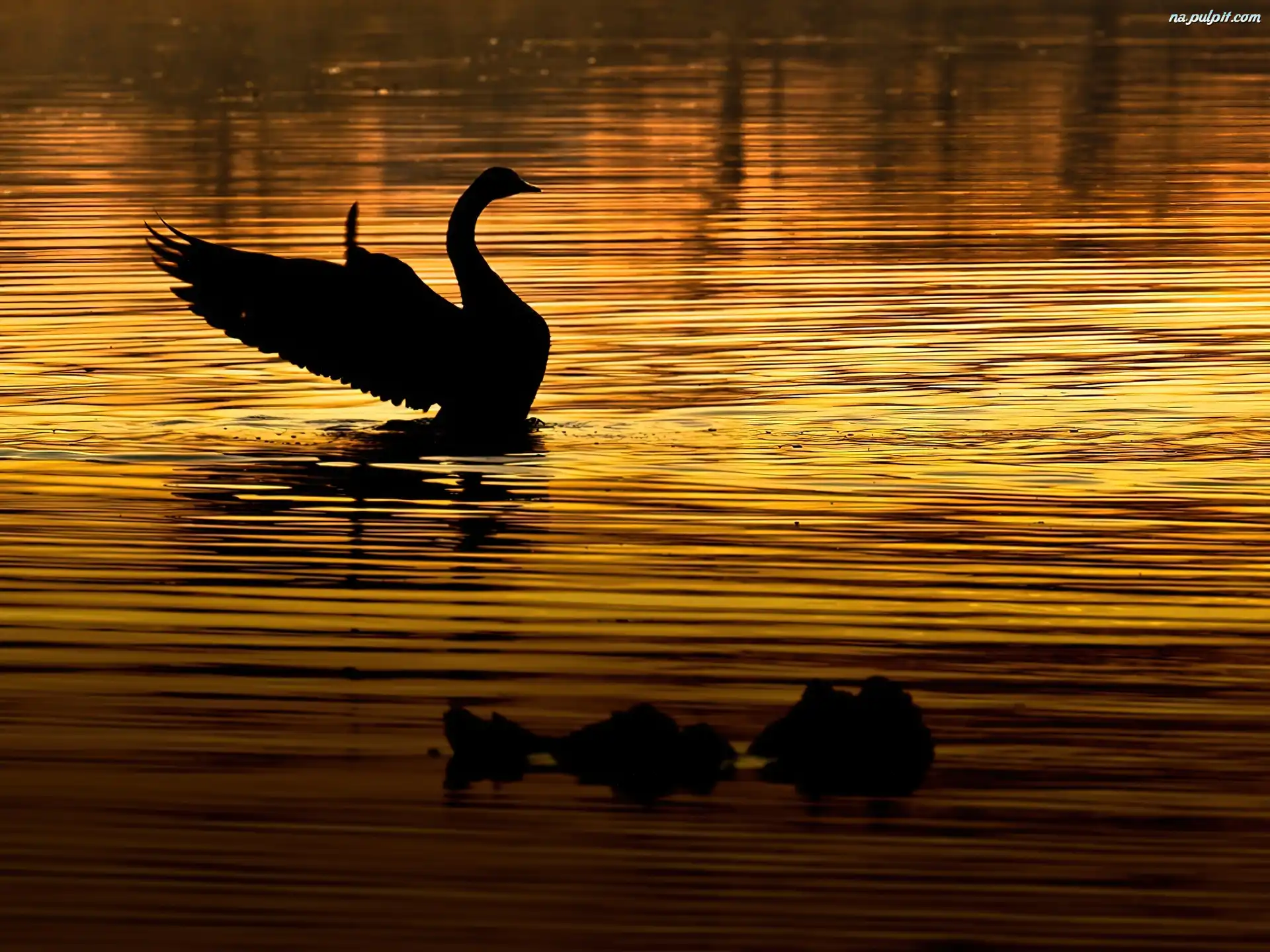Słońca, Jezioro, Łabędź, Zachód Na Pulpit
