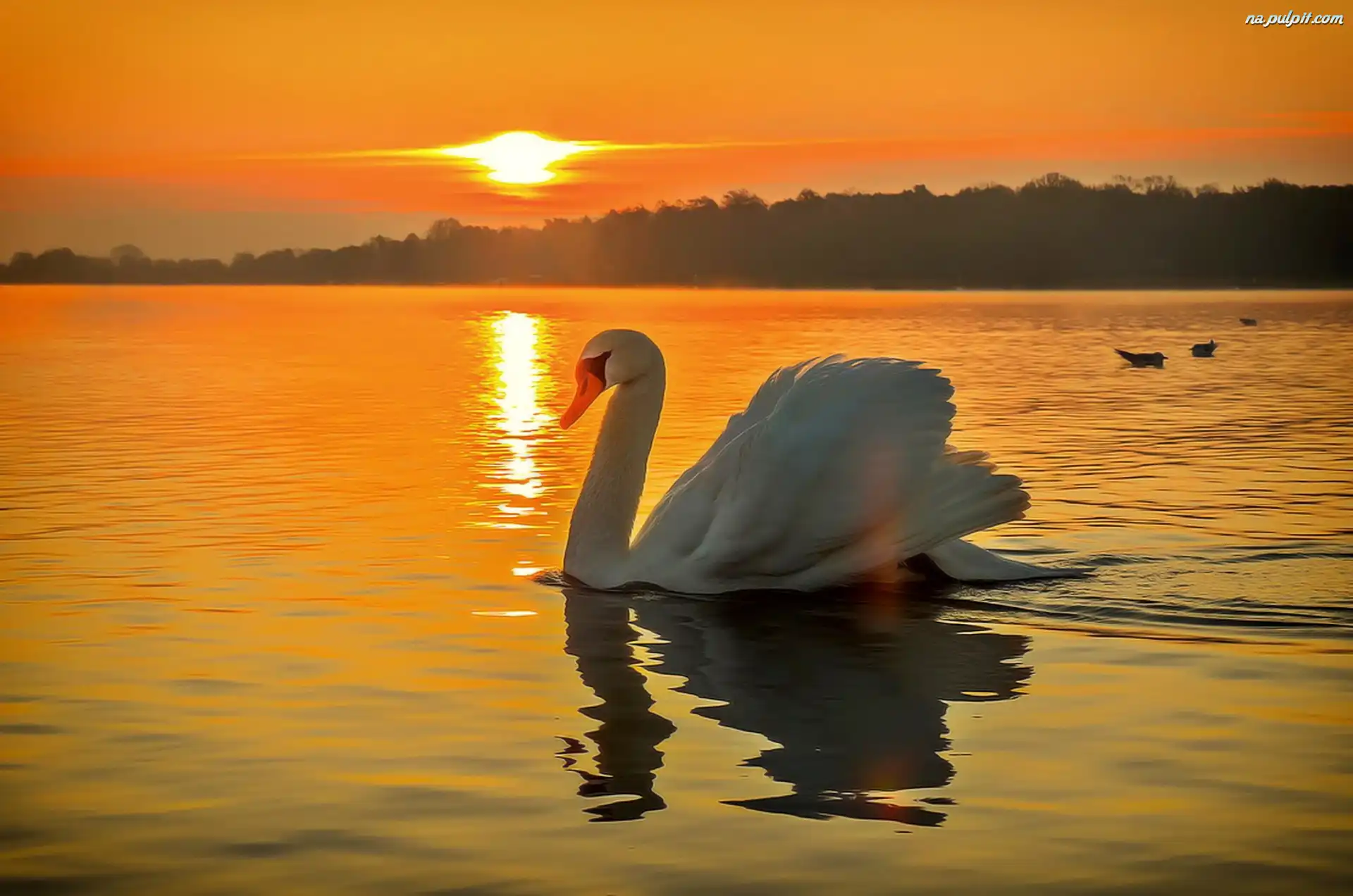 Słońca, Jezioro, Łabędź, Zachód Na Pulpit