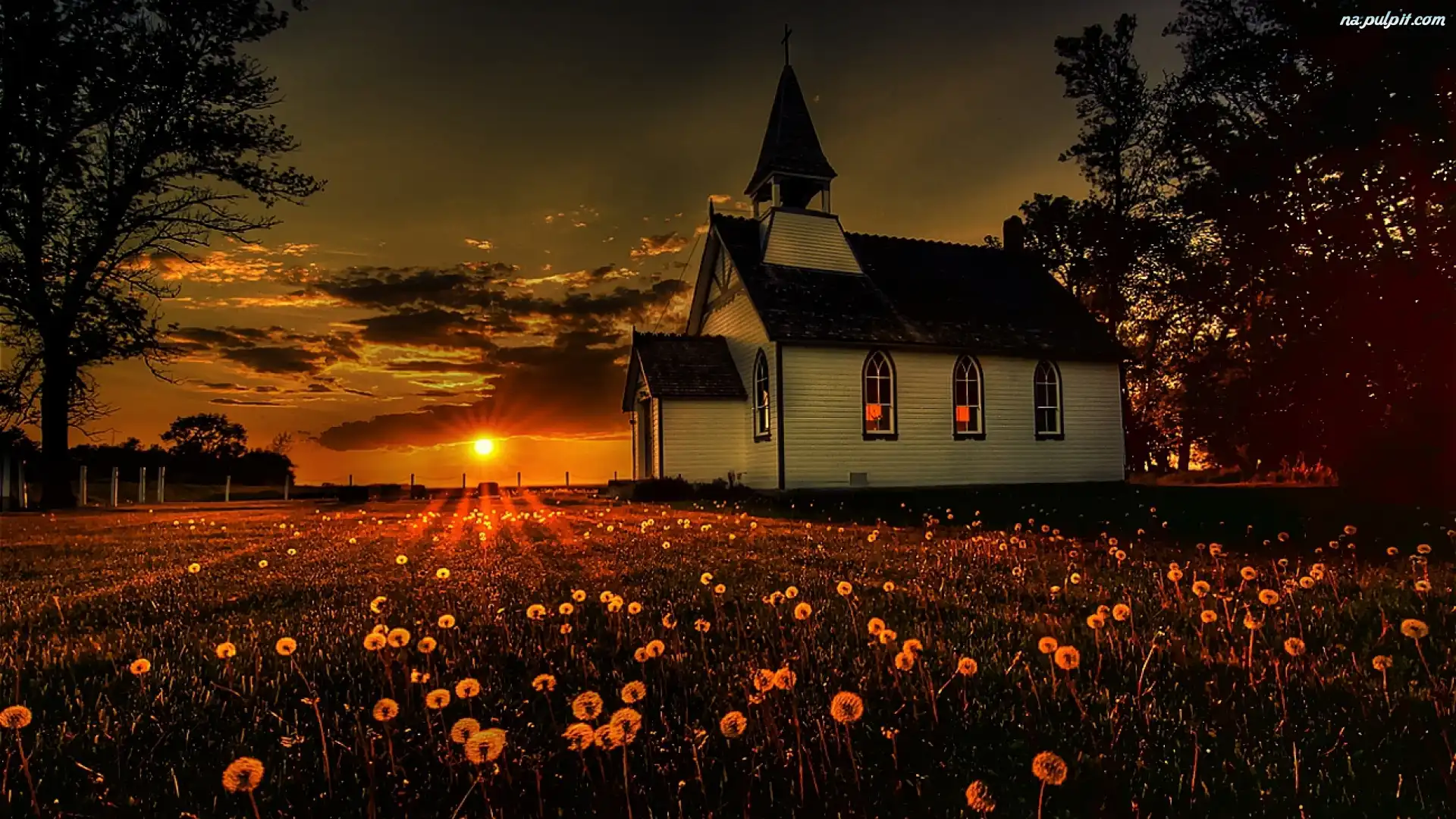 Słońca, Kościół, Łąka, Zachód Na Pulpit