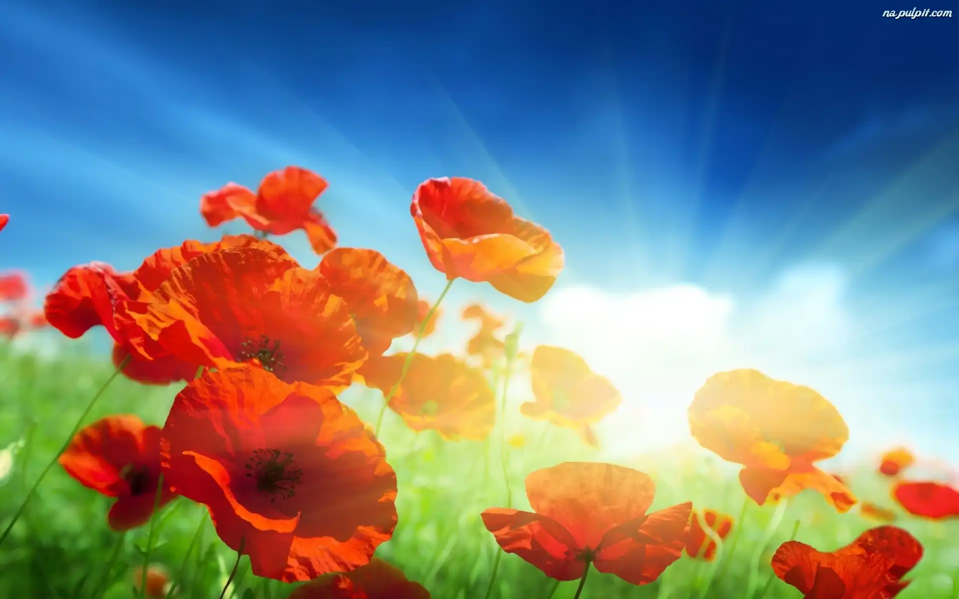 Słońca, Maki, Łąka, Promienie
