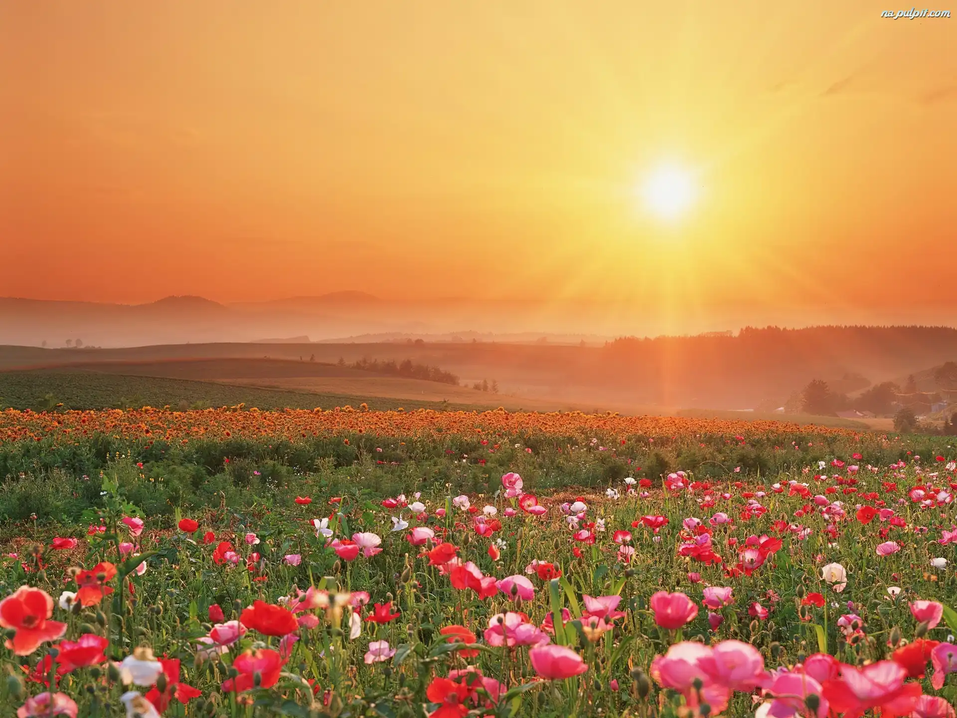 Słońca, Maki, Łąka, Zachód Na Pulpit