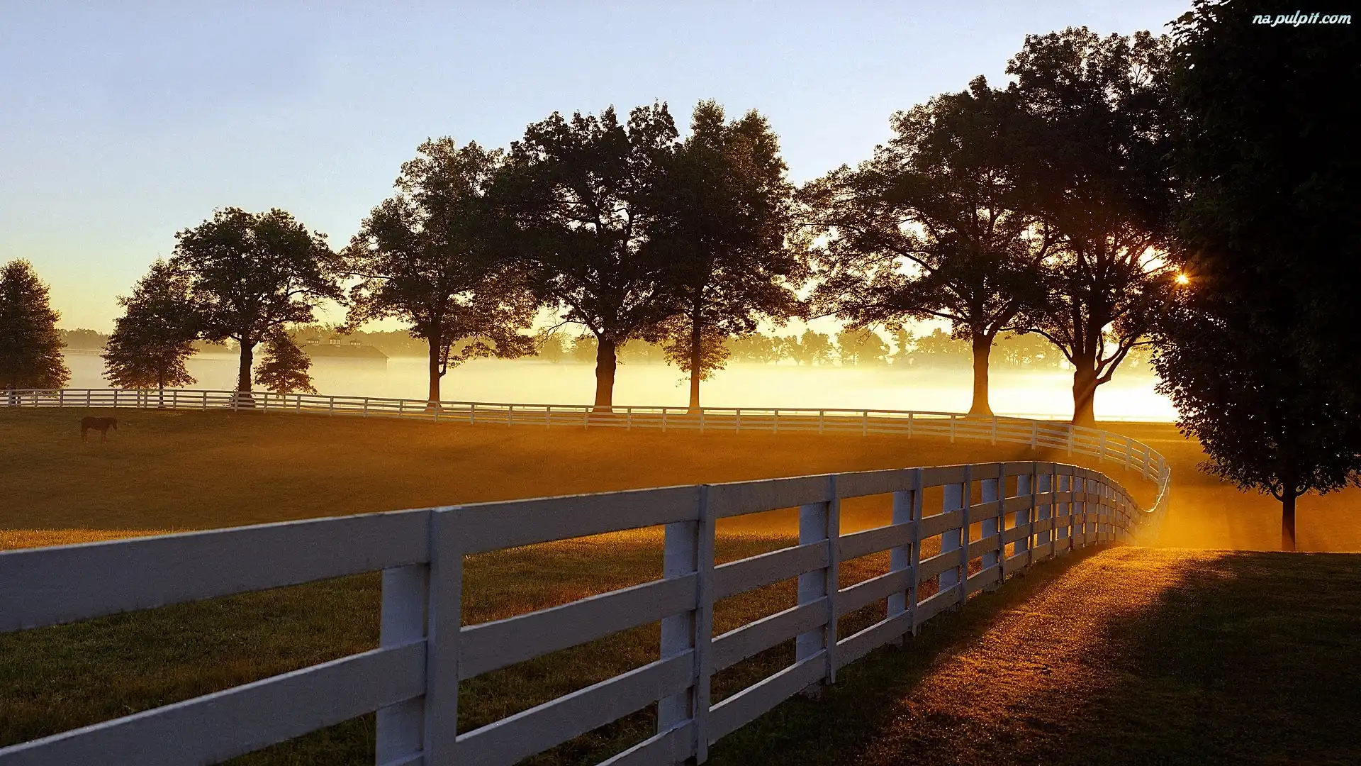 Słońca, Drzewa, Mgła, Łąka, Promienie Na Pulpit