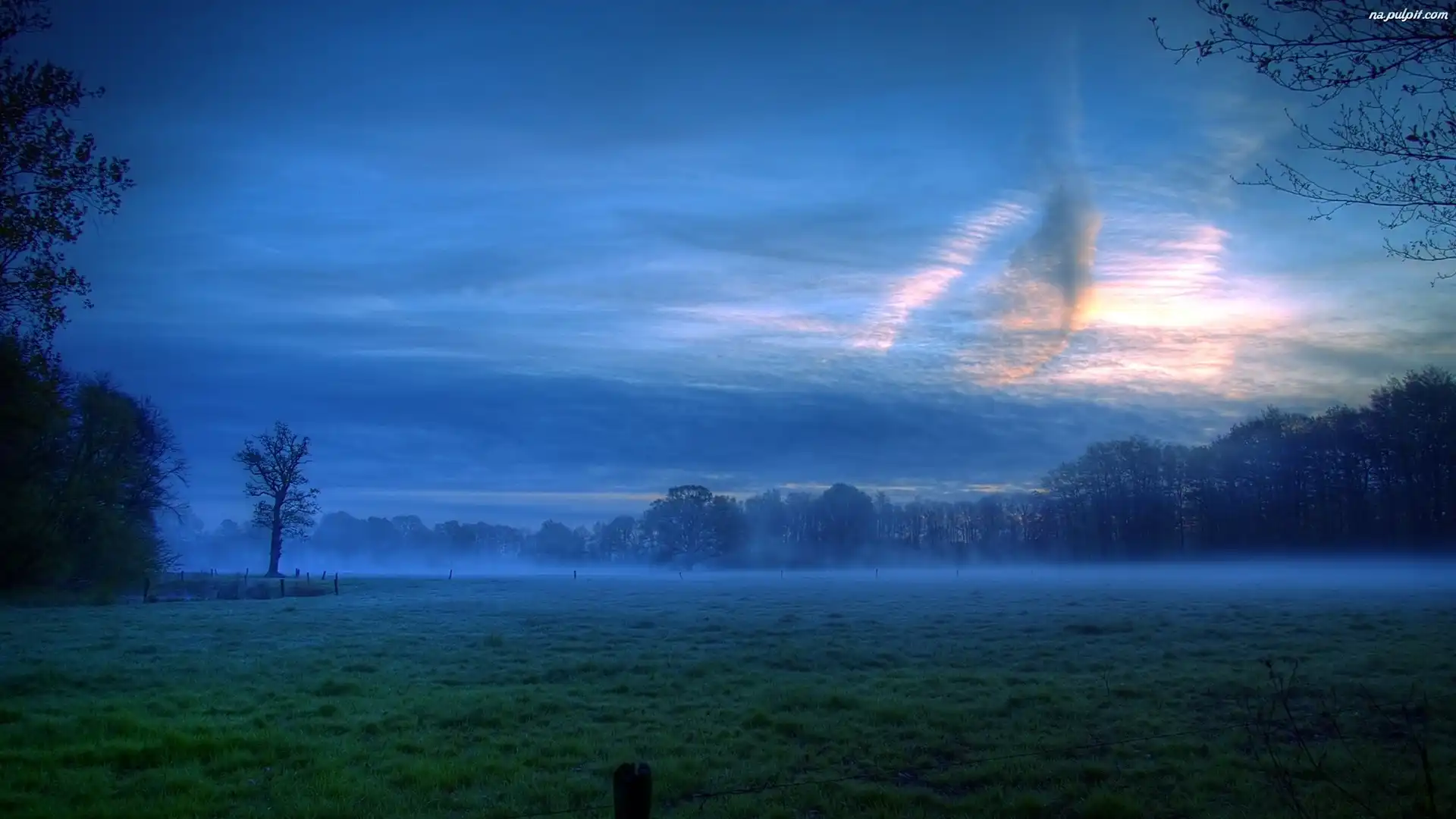 Słońca, Poranek, Mgła, Łąka, Wschód