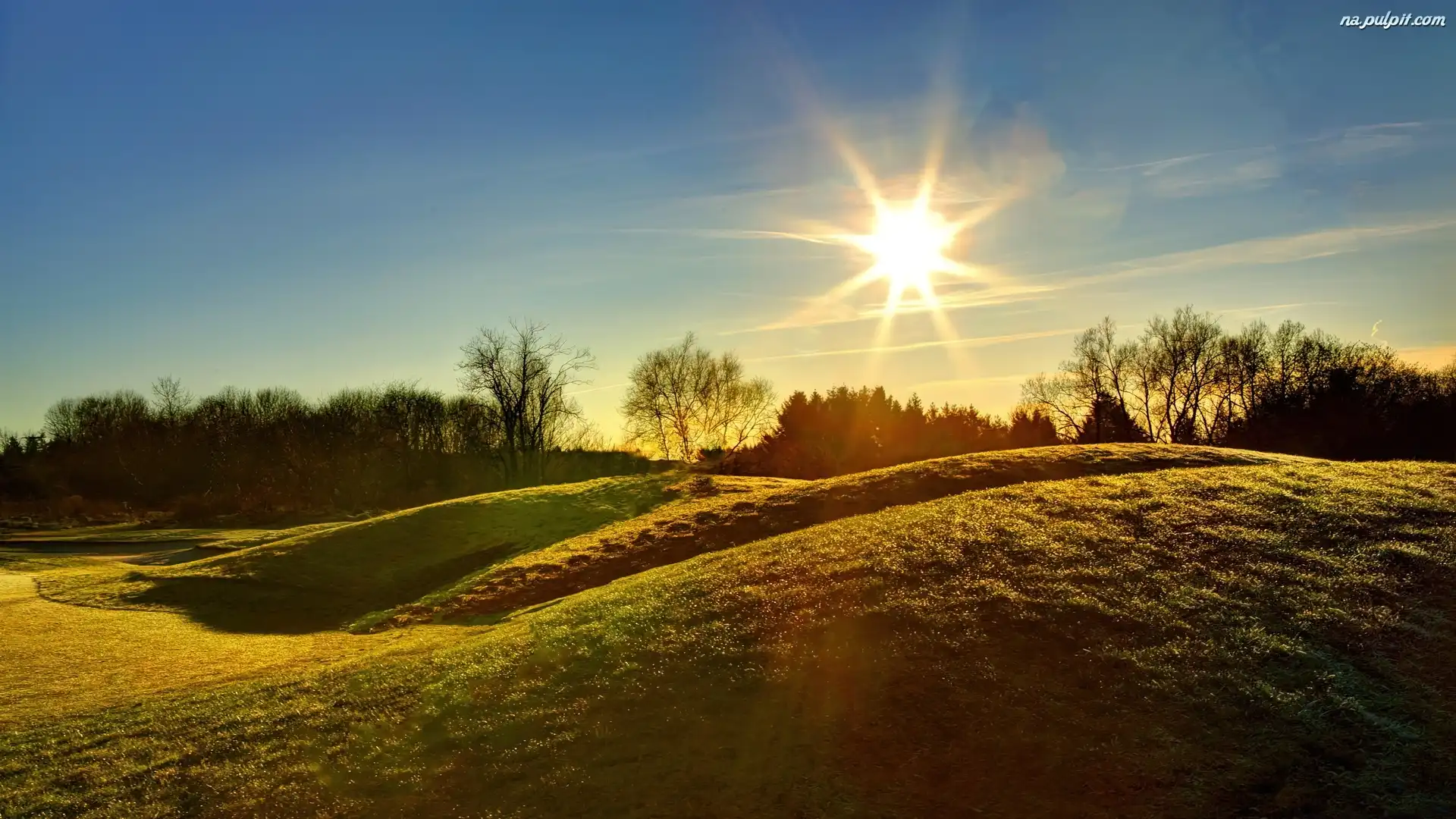 Słońca, Pagórki, Łąka, Wschód Na Pulpit
