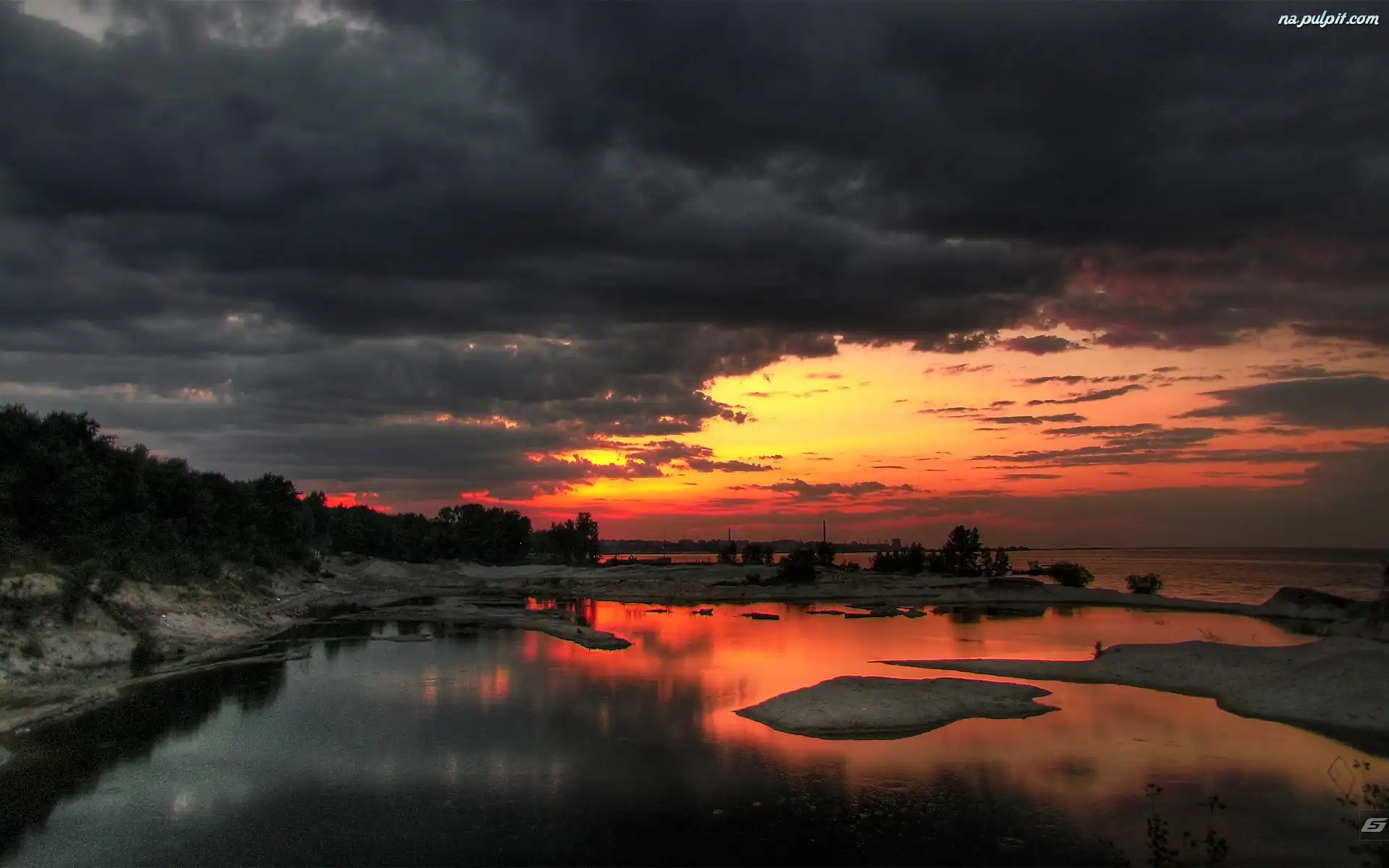 Słońca, Jezioro, Chmury, Zachód Na Pulpit