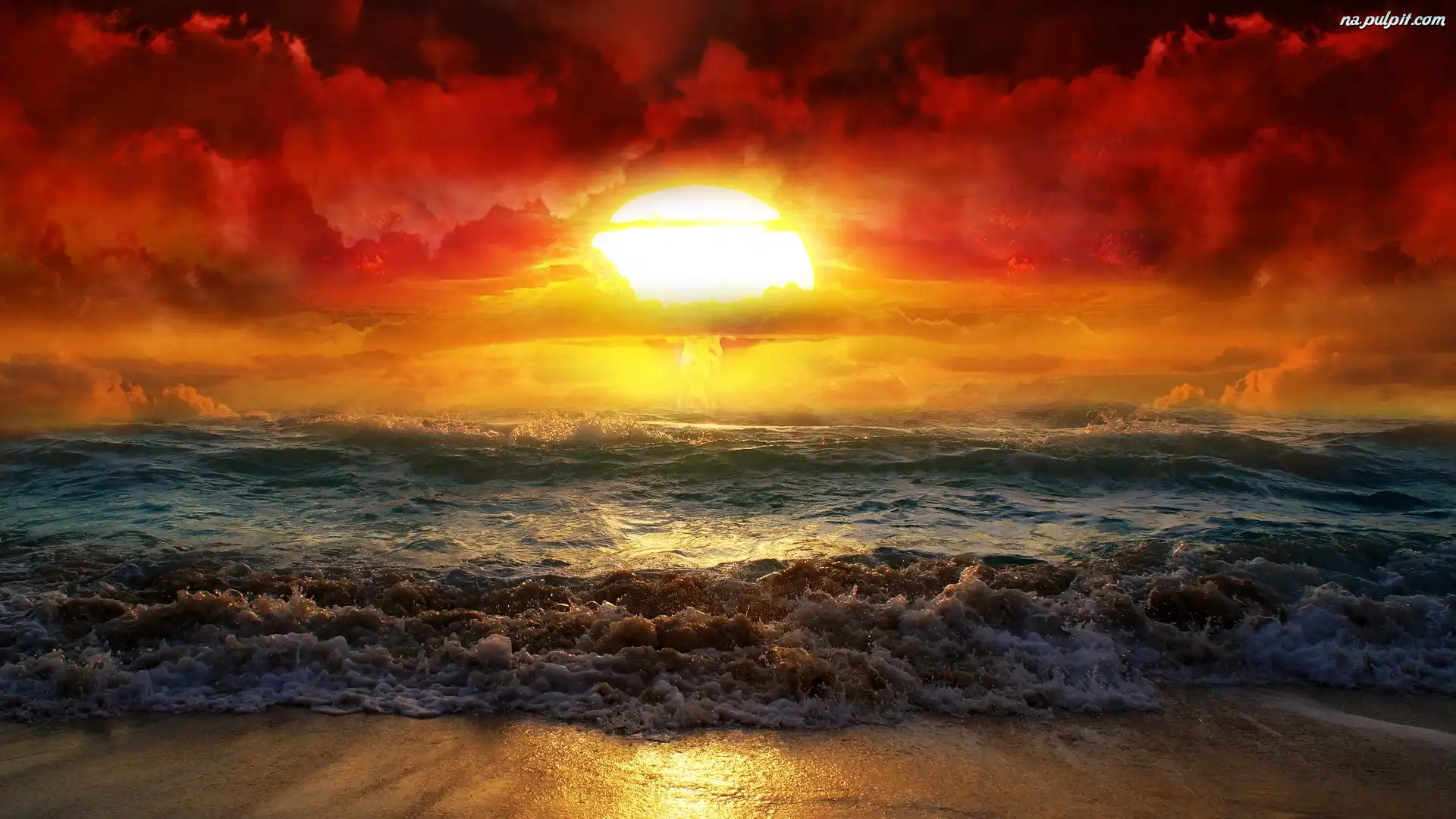 Słońca, Morze, Niebo, Chmury, Zachód Na Pulpit