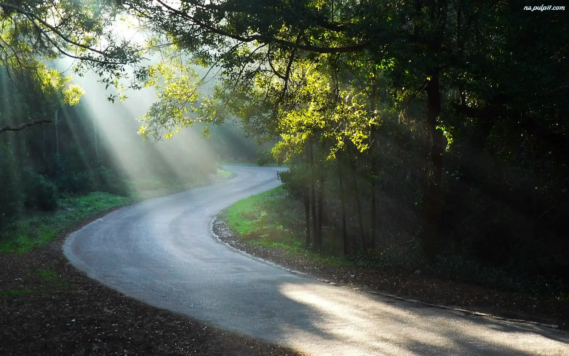 Słońca, Drzewa, Droga, Promienie Na Pulpit