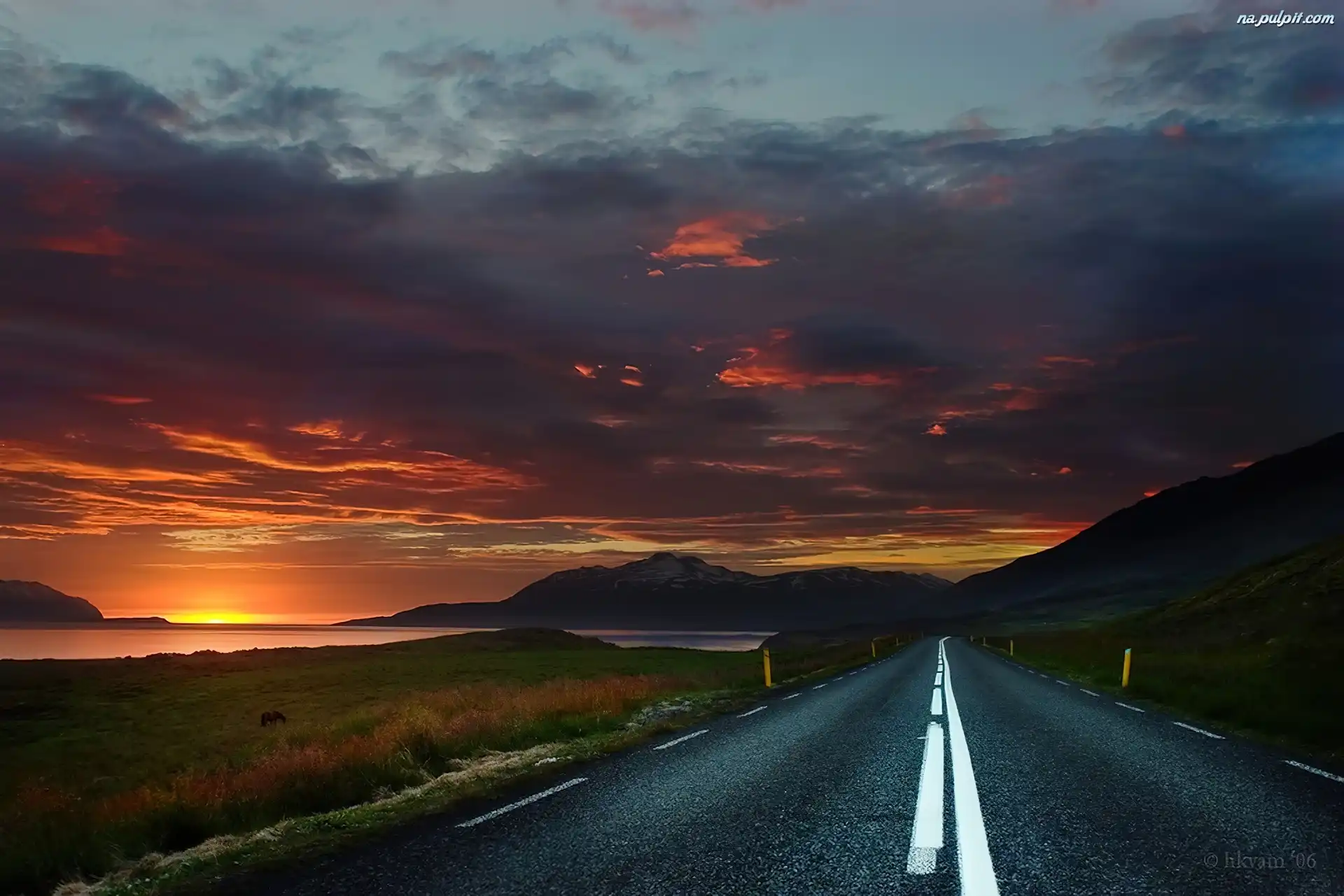 Słońca, Niebo, Droga, Zachód Na Pulpit