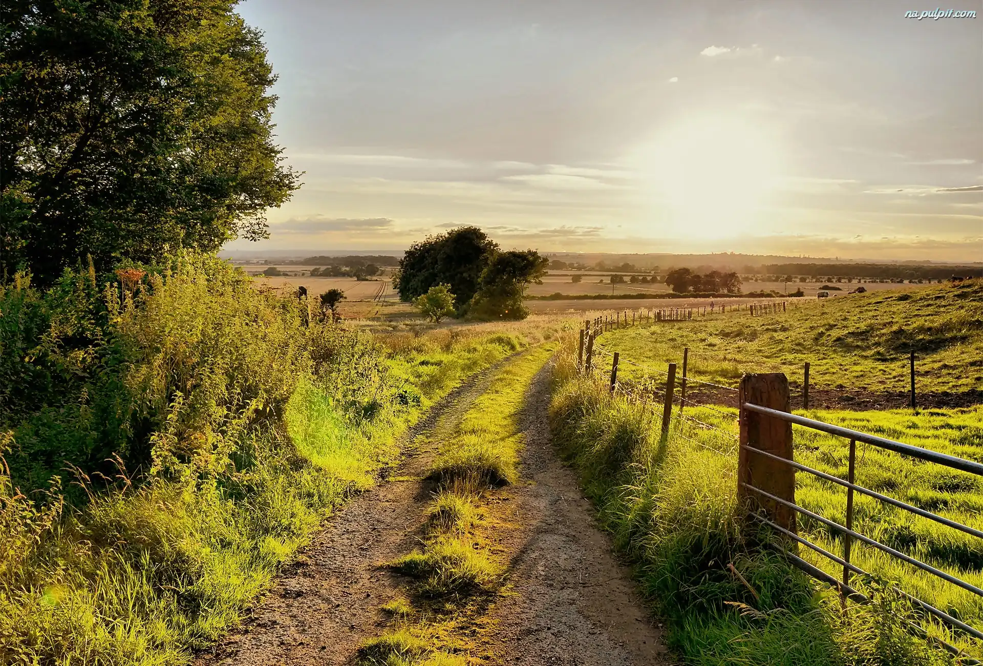 Słońca, Ogrodzenie, Pola, Droga, Wschód