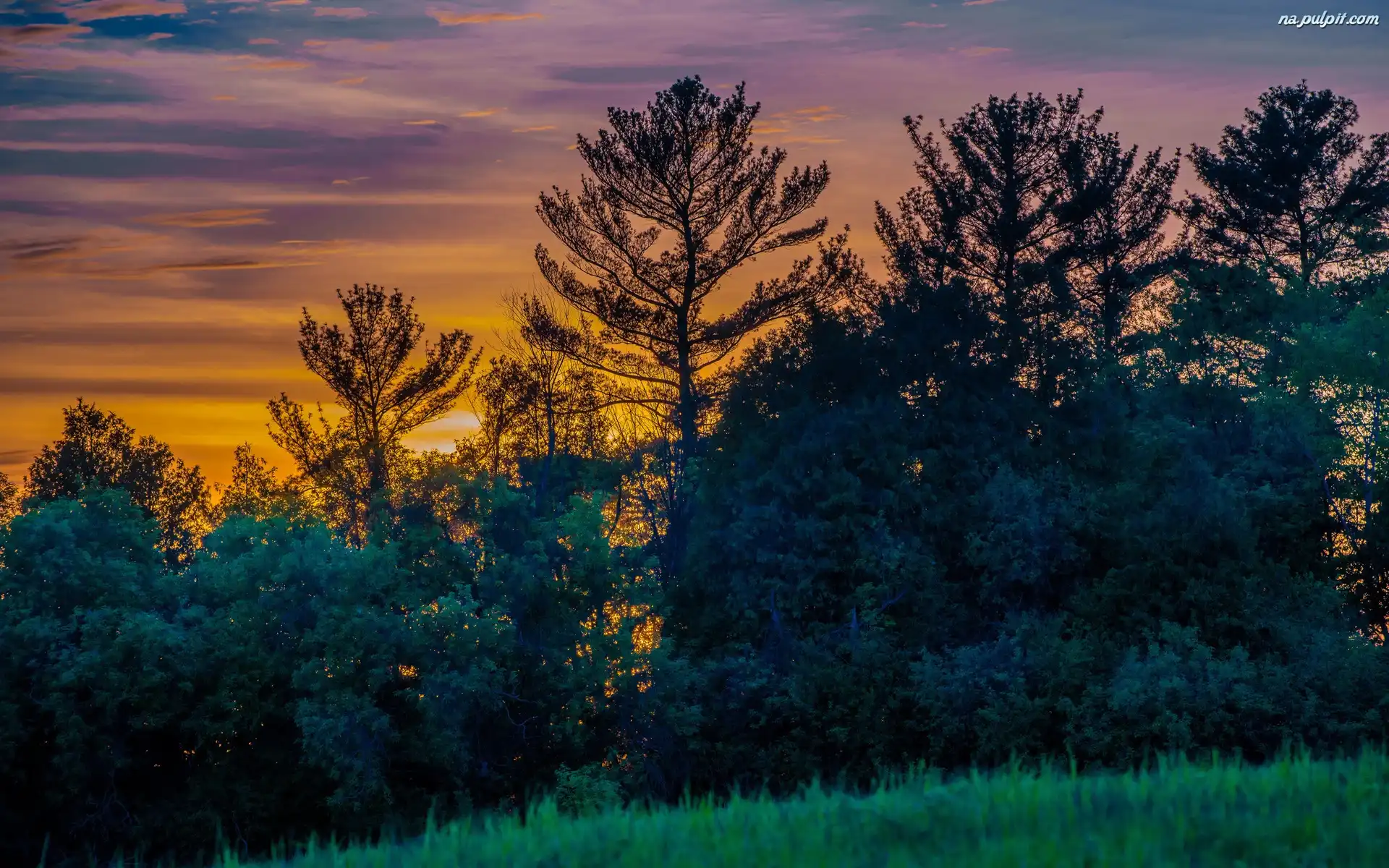 Słońca, Łąka, Drzewa, Zachód Na Pulpit