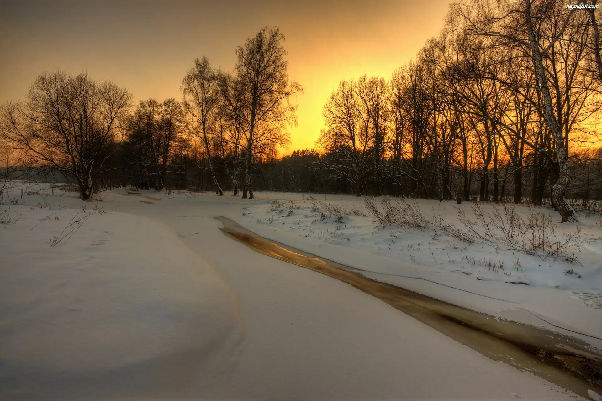 Słońca, Potok, Drzewa, Zachód