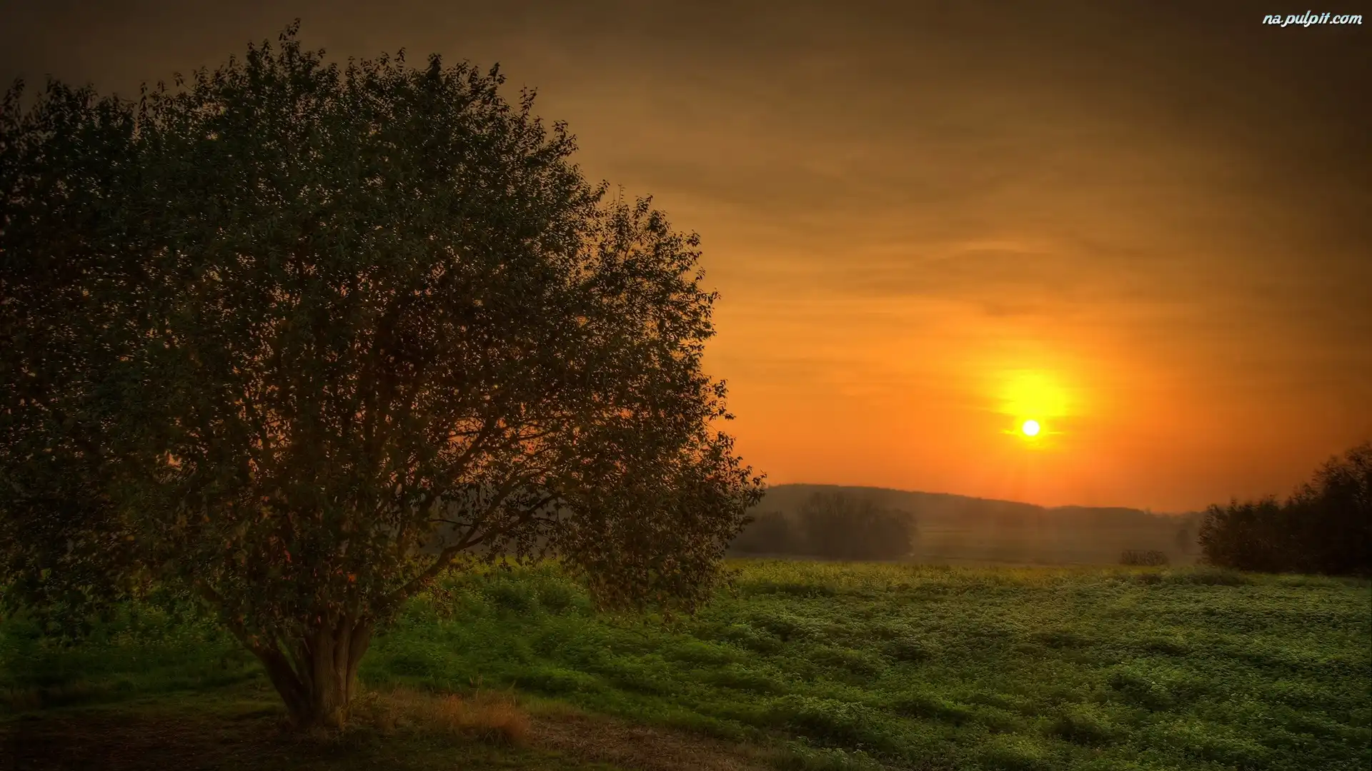 Słońca, Łąka, Drzewo, Zachód Na Pulpit