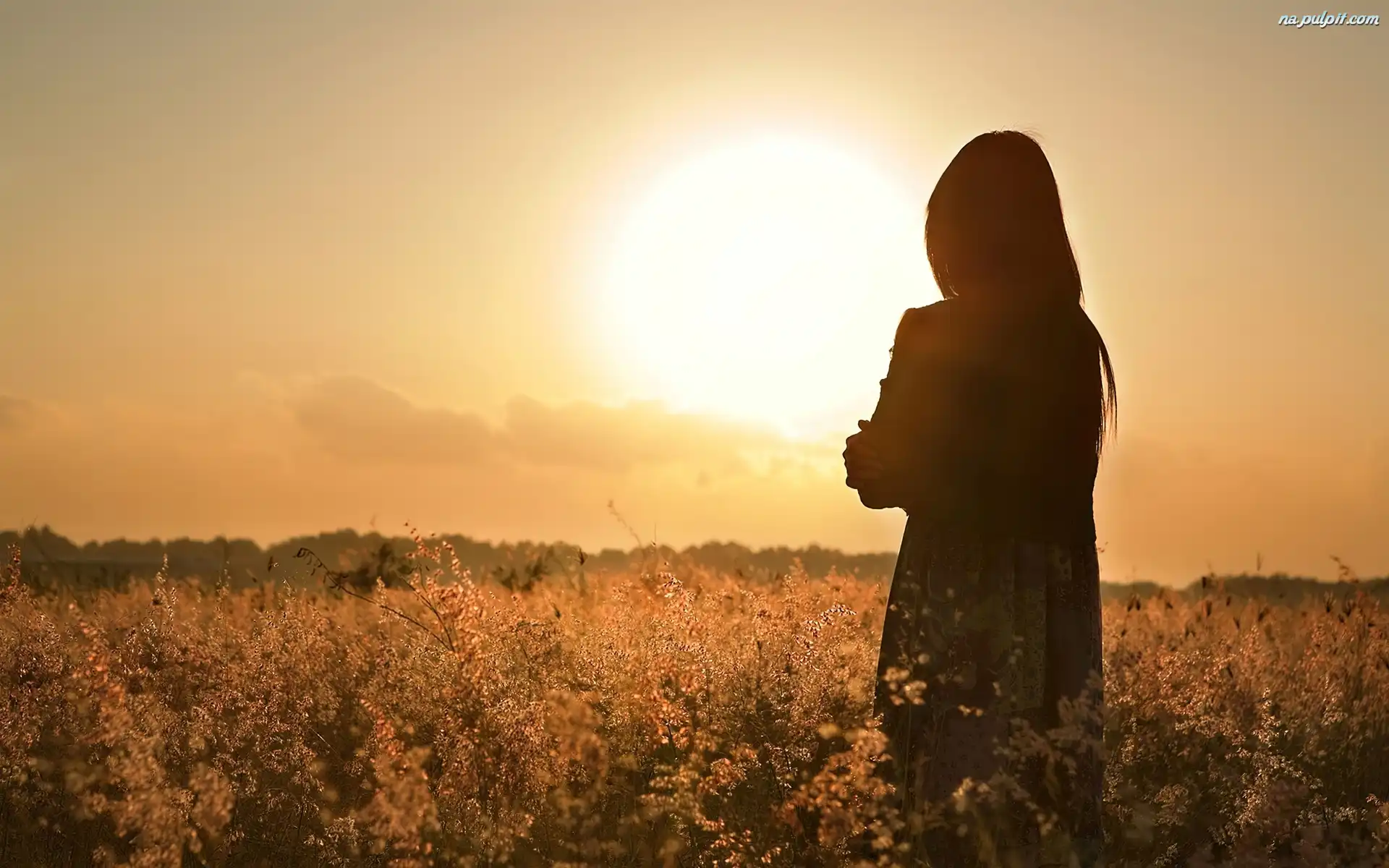 Słońca, Łąka, Dziewczyna, Zachód