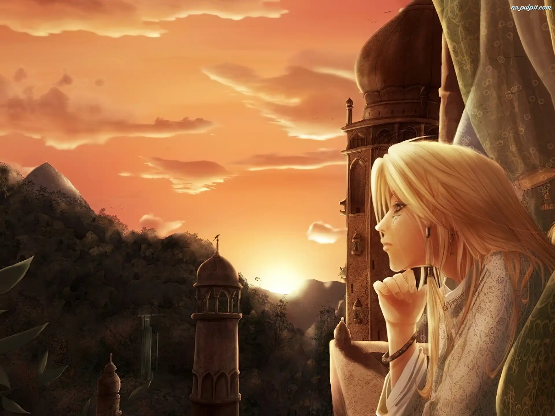 Słońca, Patio, Dziewczyna, Zachód Na Pulpit
