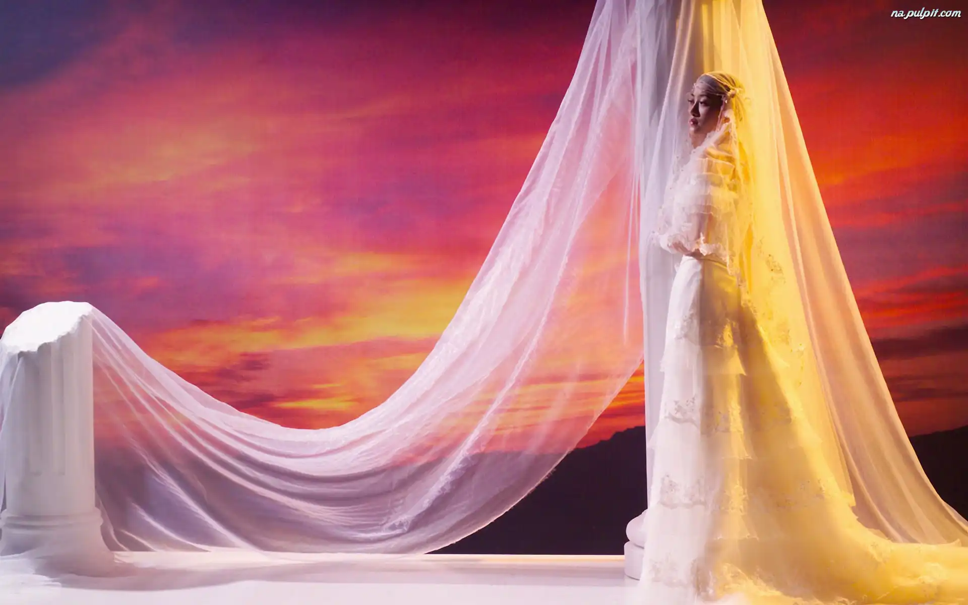 Słońca, Woal, Dziewczyna, Zachód Na Pulpit