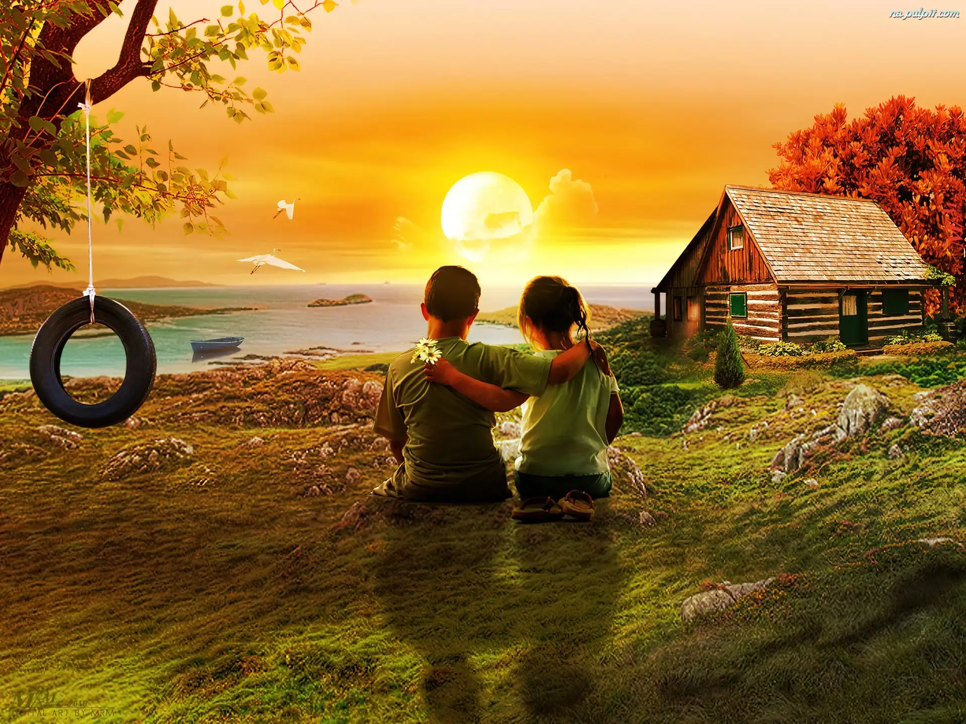 Słońca, Chłopiec, Dziewczynka, Zachód