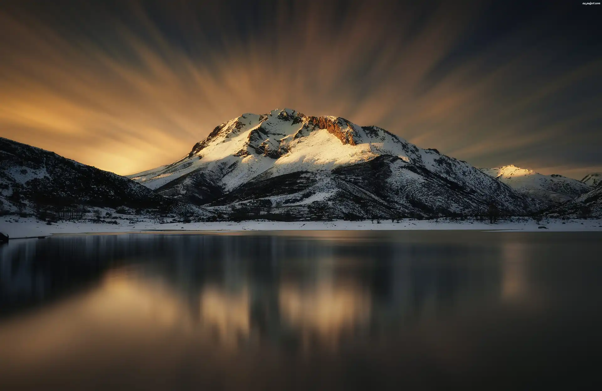 Słońca, Morze, Góra, Promienie Na Pulpit