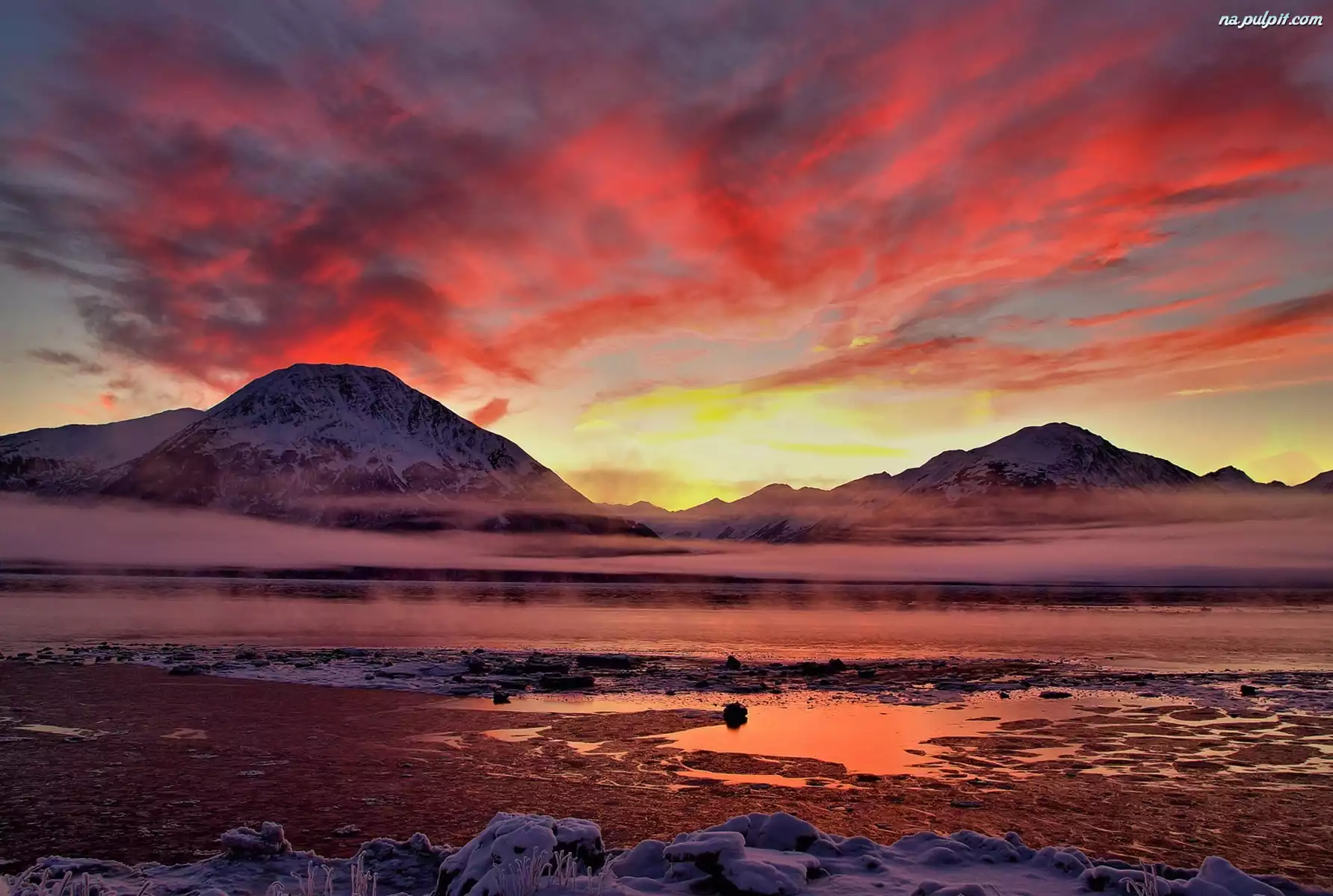 Słońca, Woda, Chmury, Góry, Zachód Na Pulpit