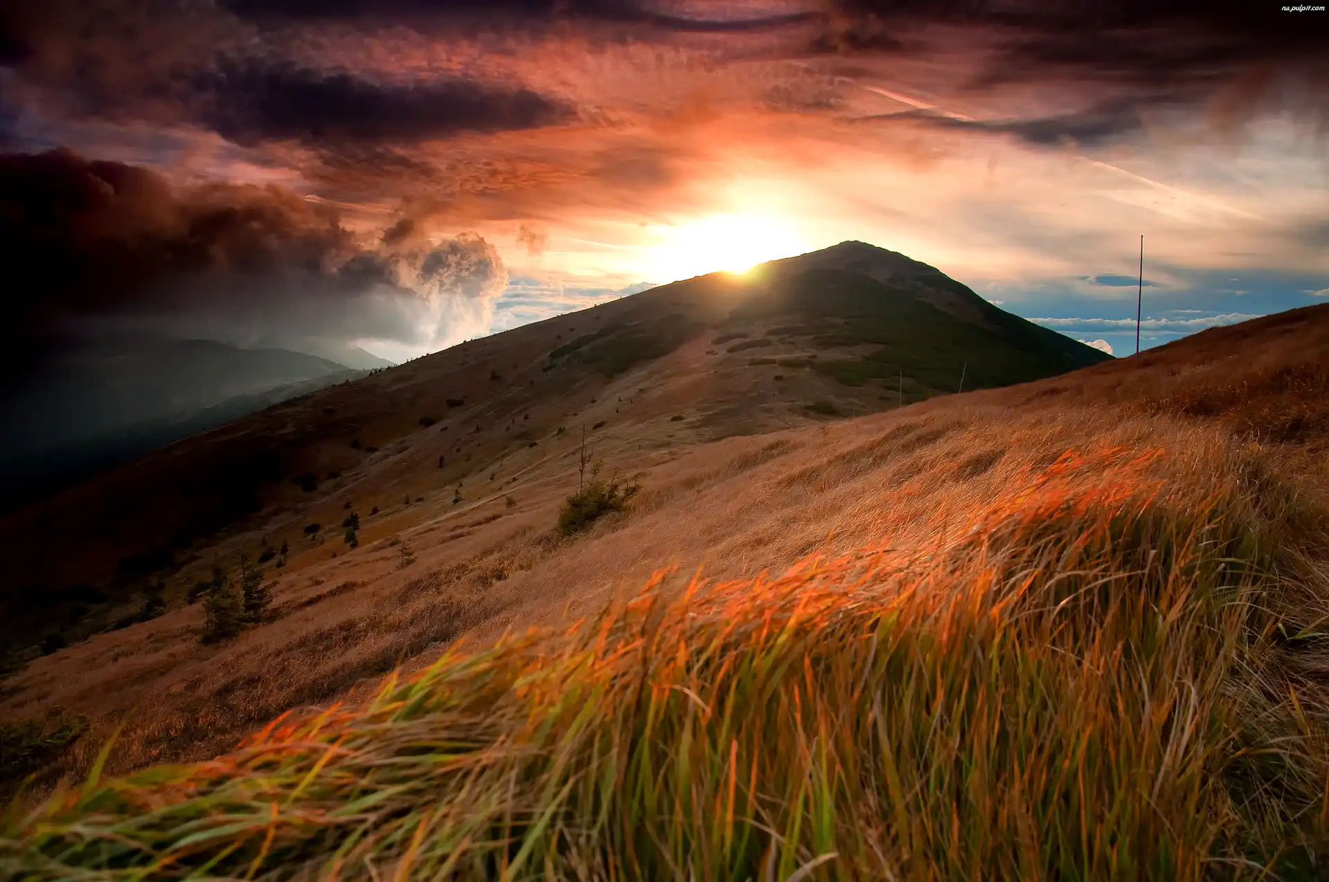 Słońca, Chmury, Góry, Zachód
