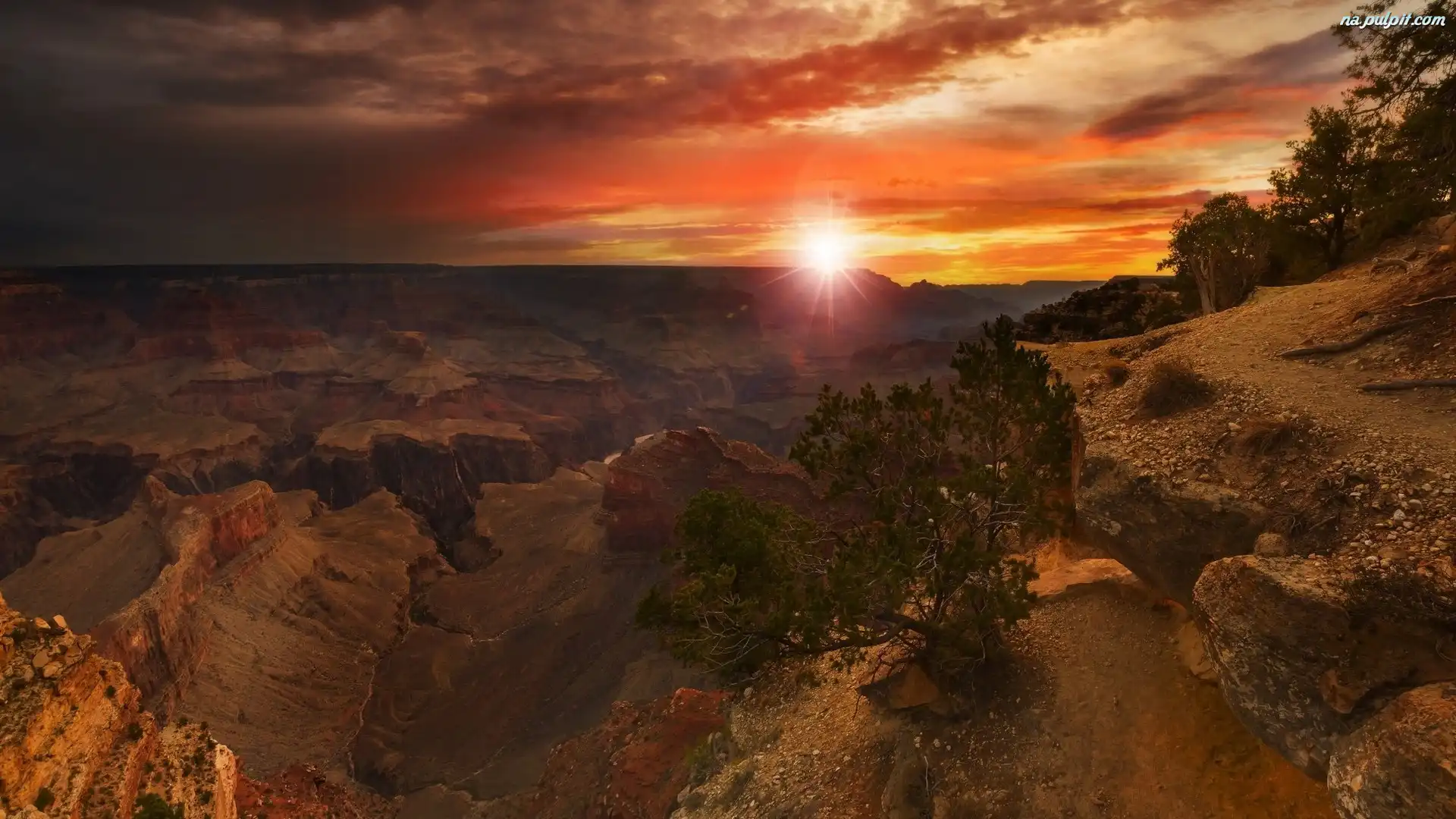 Słońca, Drzewo, Góry, Zachód Na Pulpit